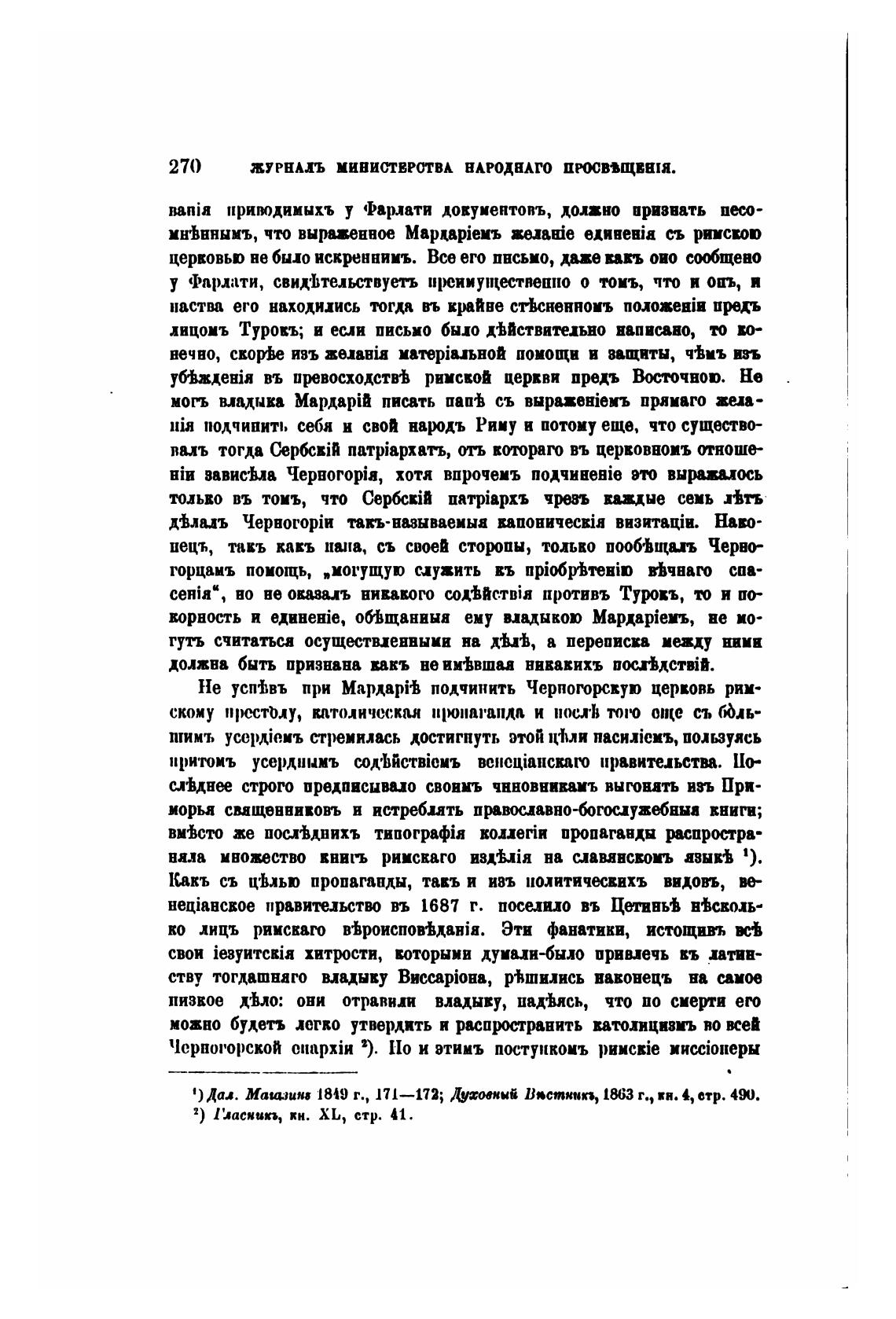 Не усйвъ при МардарЊ подчинить Черногорскую церковь рим-