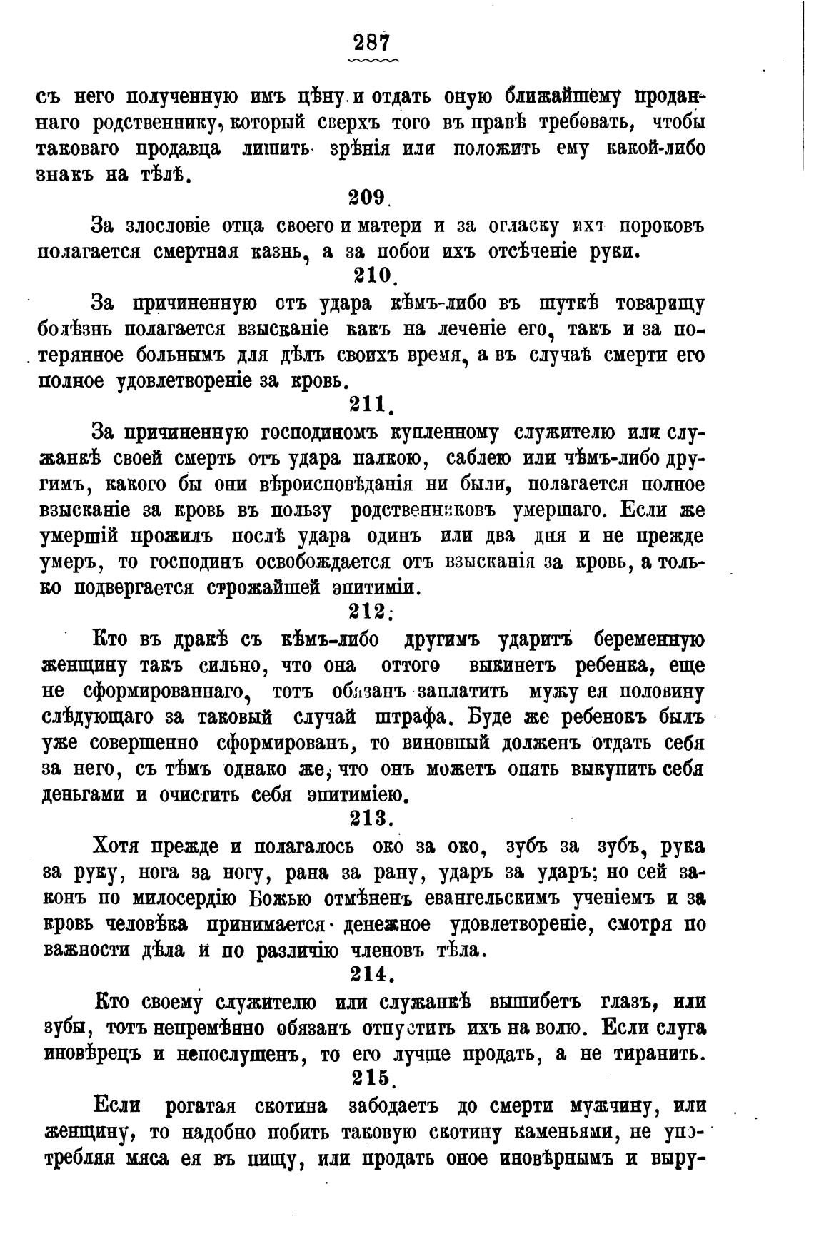 полагается смертная вазнь, а за побои ихъ руки.