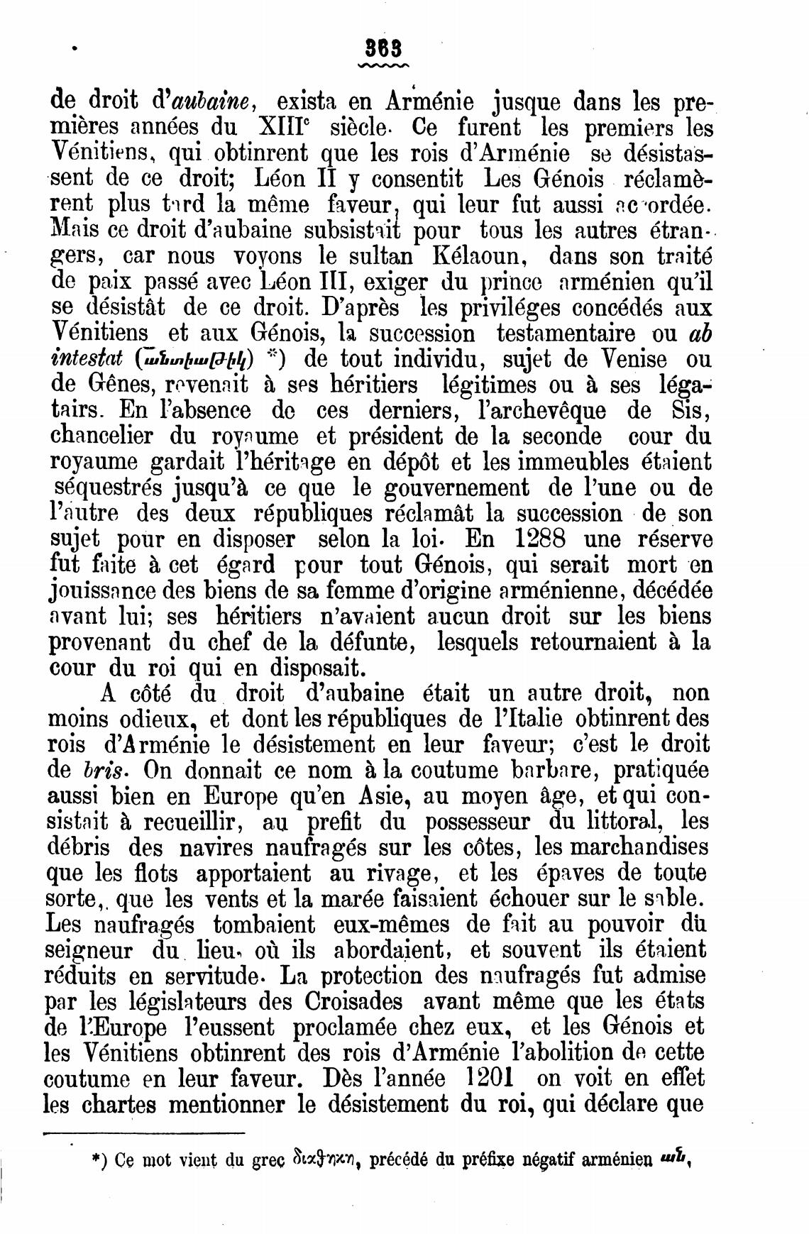 de droit d'aubaine, exista еп Arm6nie jusque dans les рте-