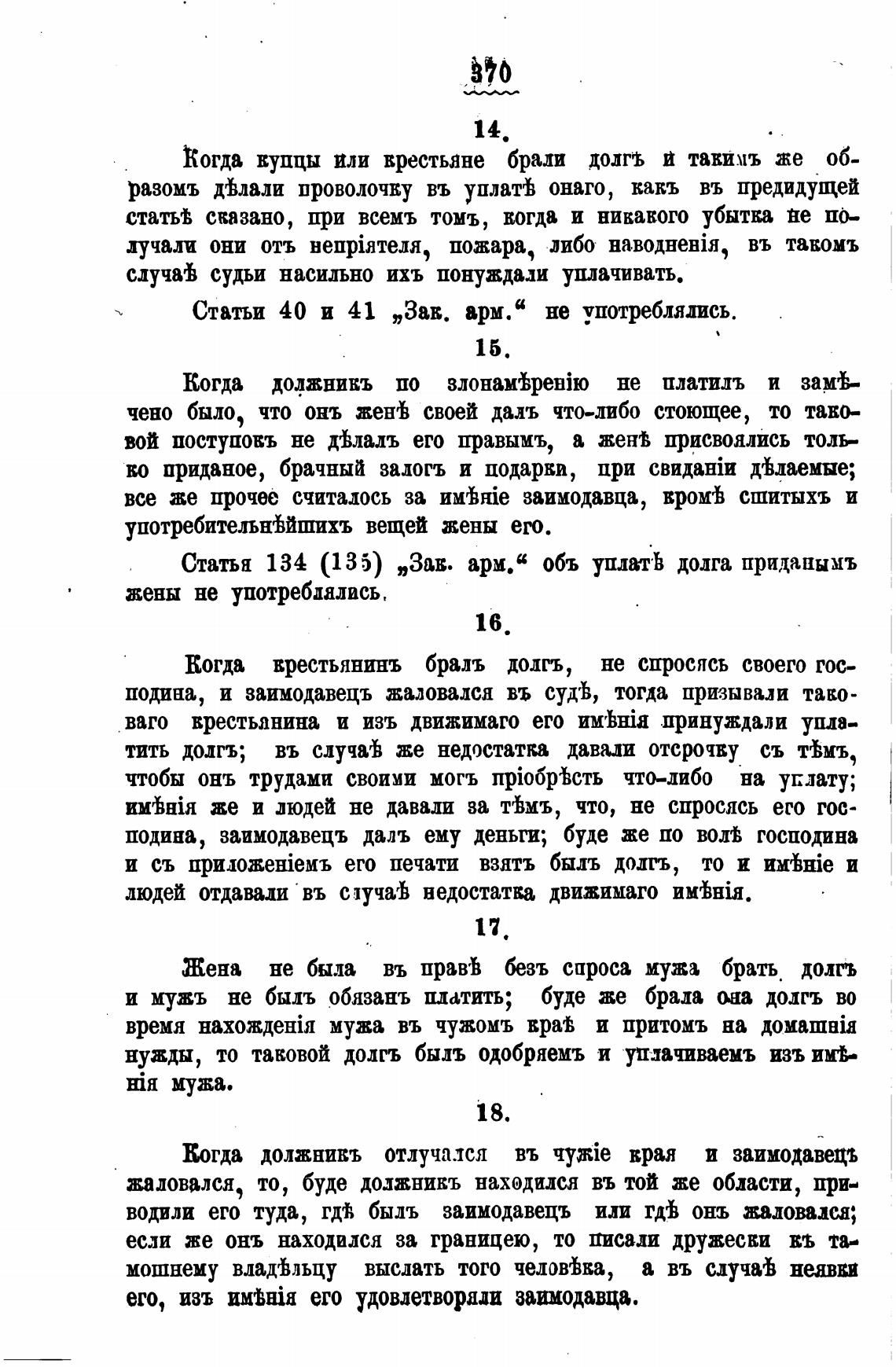 Статья 134 (135) „Зав. арм.“ объ уплатЬ долга придаиымъ