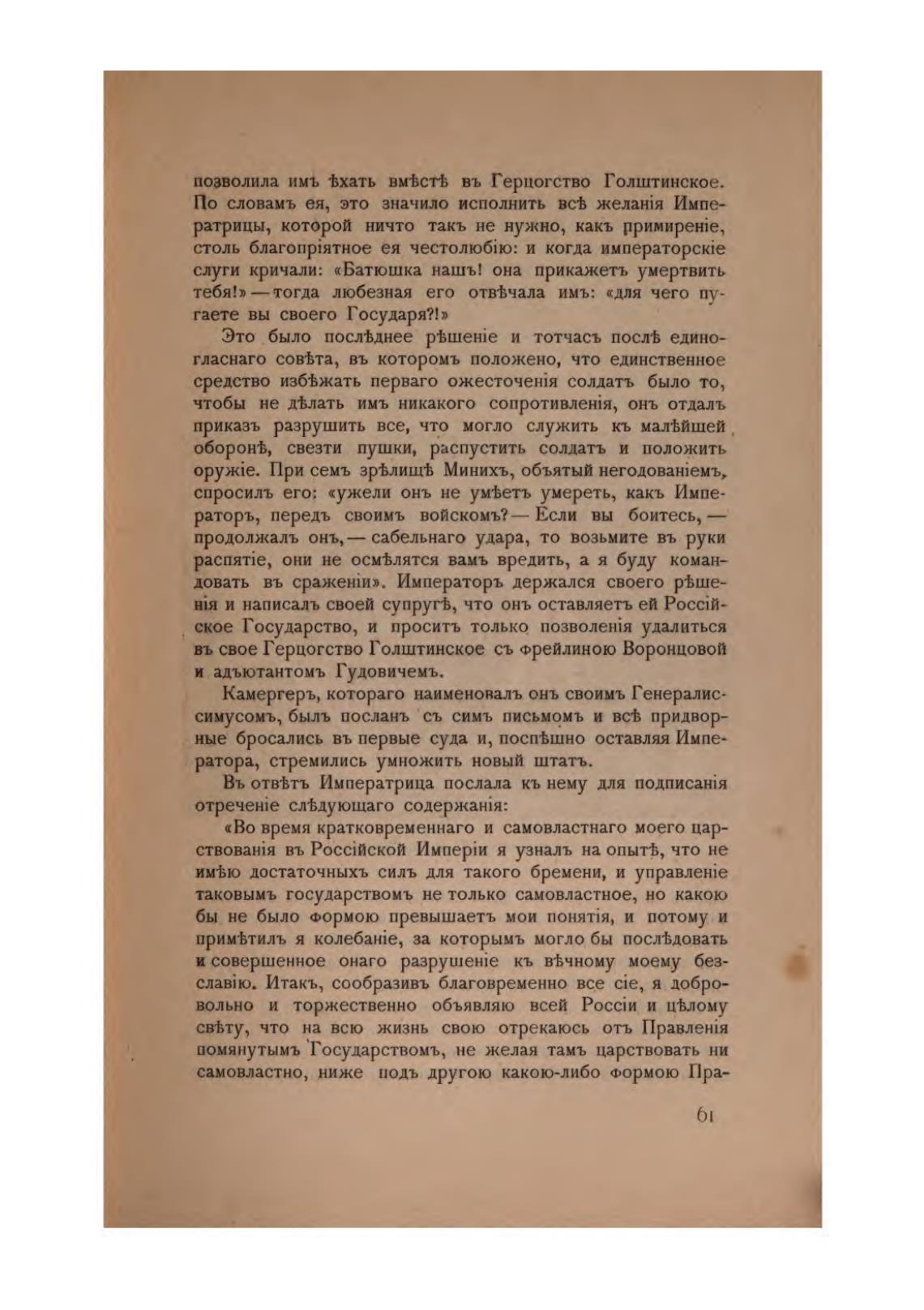 По словамъ ея, это значило исполнить Импе-