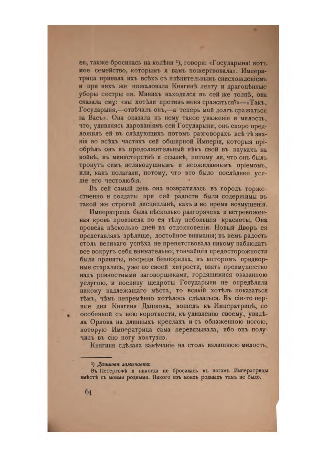 вые дни Княгиня Дашкова, вошедъ кь Императриц%, по