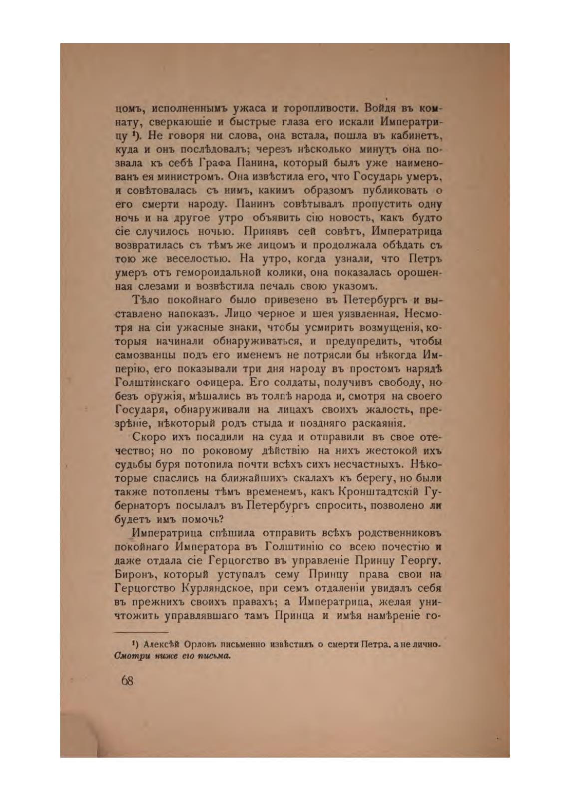 1) Алекс+.й Орловъ письменно изв%стилъ о смерти Петра. ане лично.