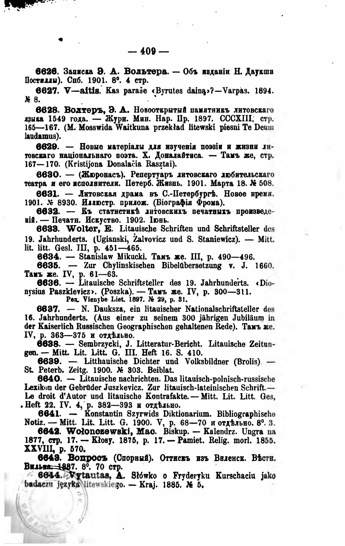 6638. W01tr, Е. Litauische Schriften und Schriftsteller des