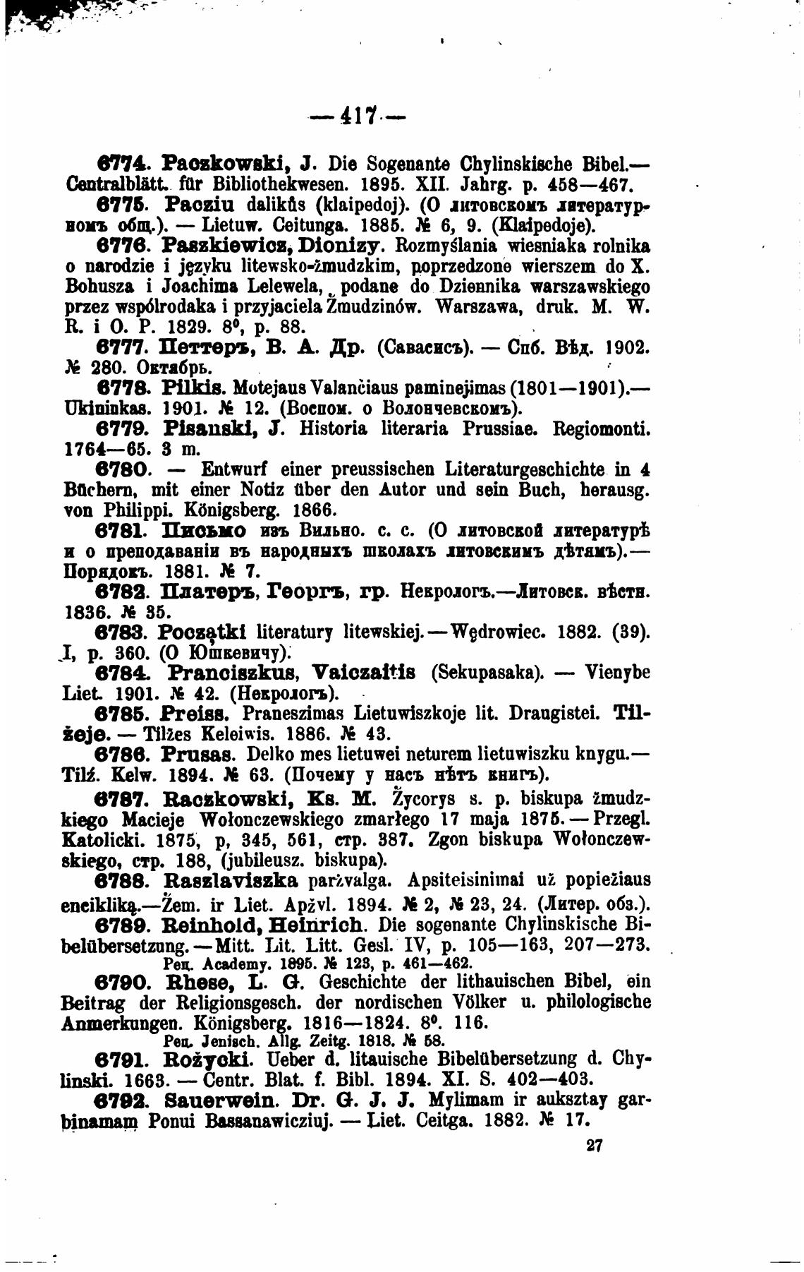 6774. PaozkowBki, Ј. Die Sogenante Chylinskische Bibel.—