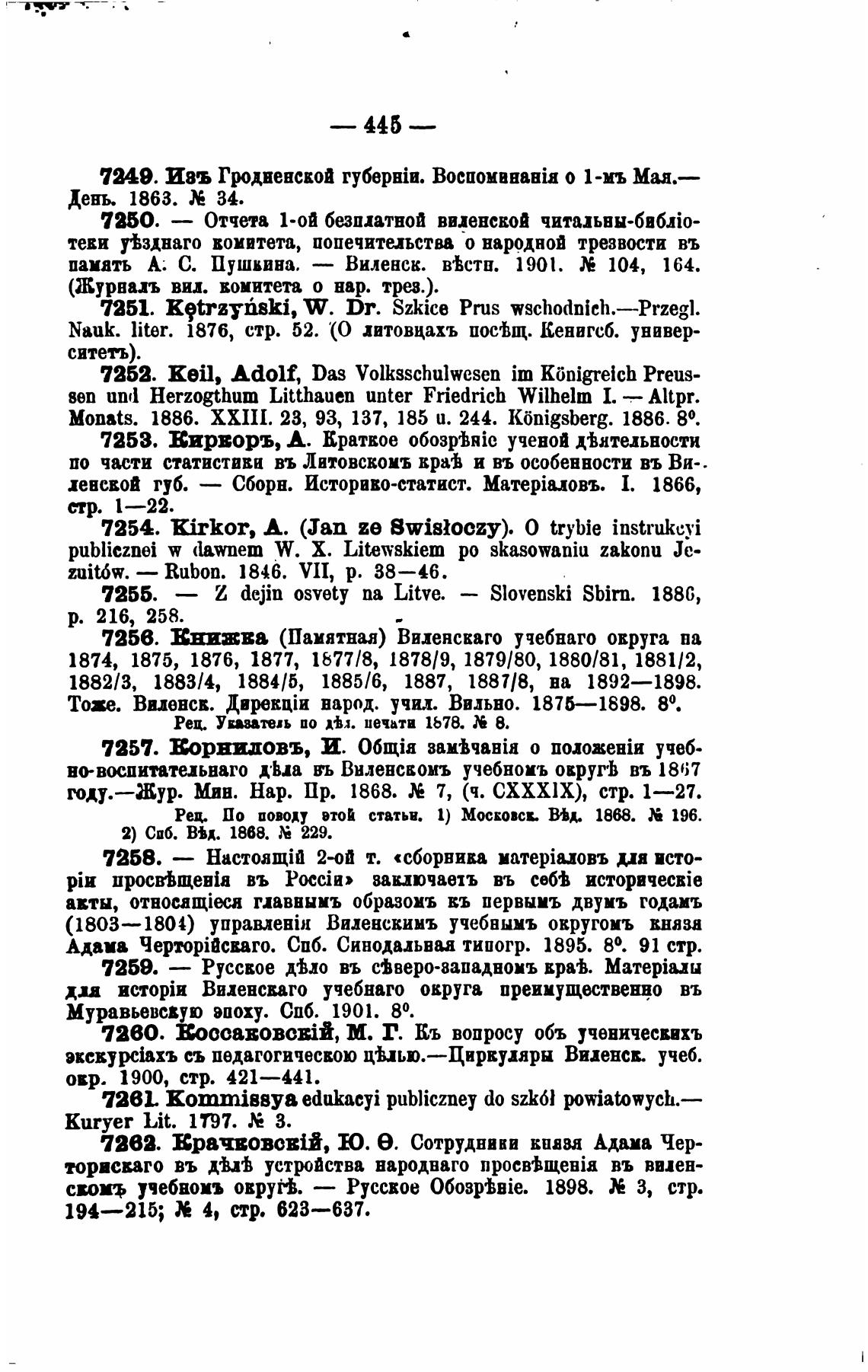 Тохе. Вилевсв. Дирек:ји народ. учил. Вильно. 1875—1898. 80.