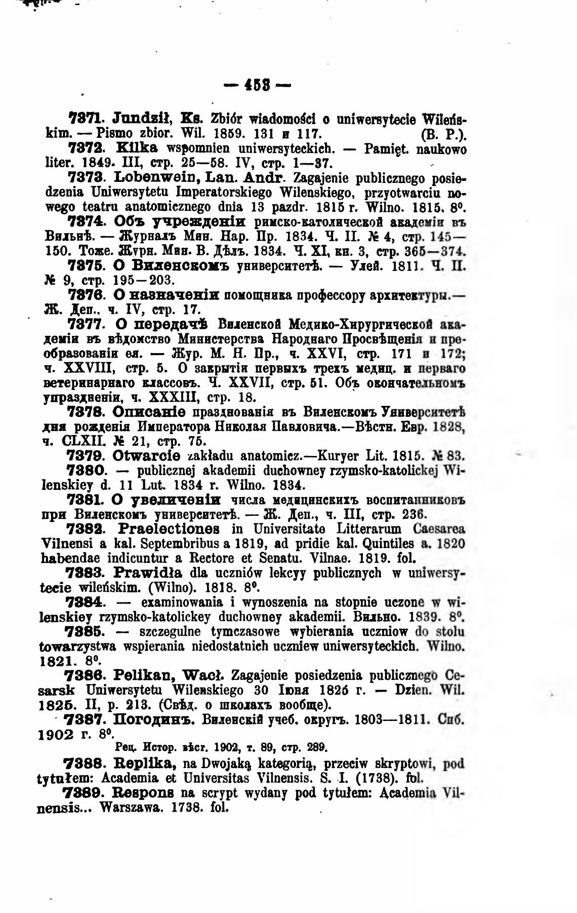 7878. 0nzcaEie въ Виленсвомъ Университеть