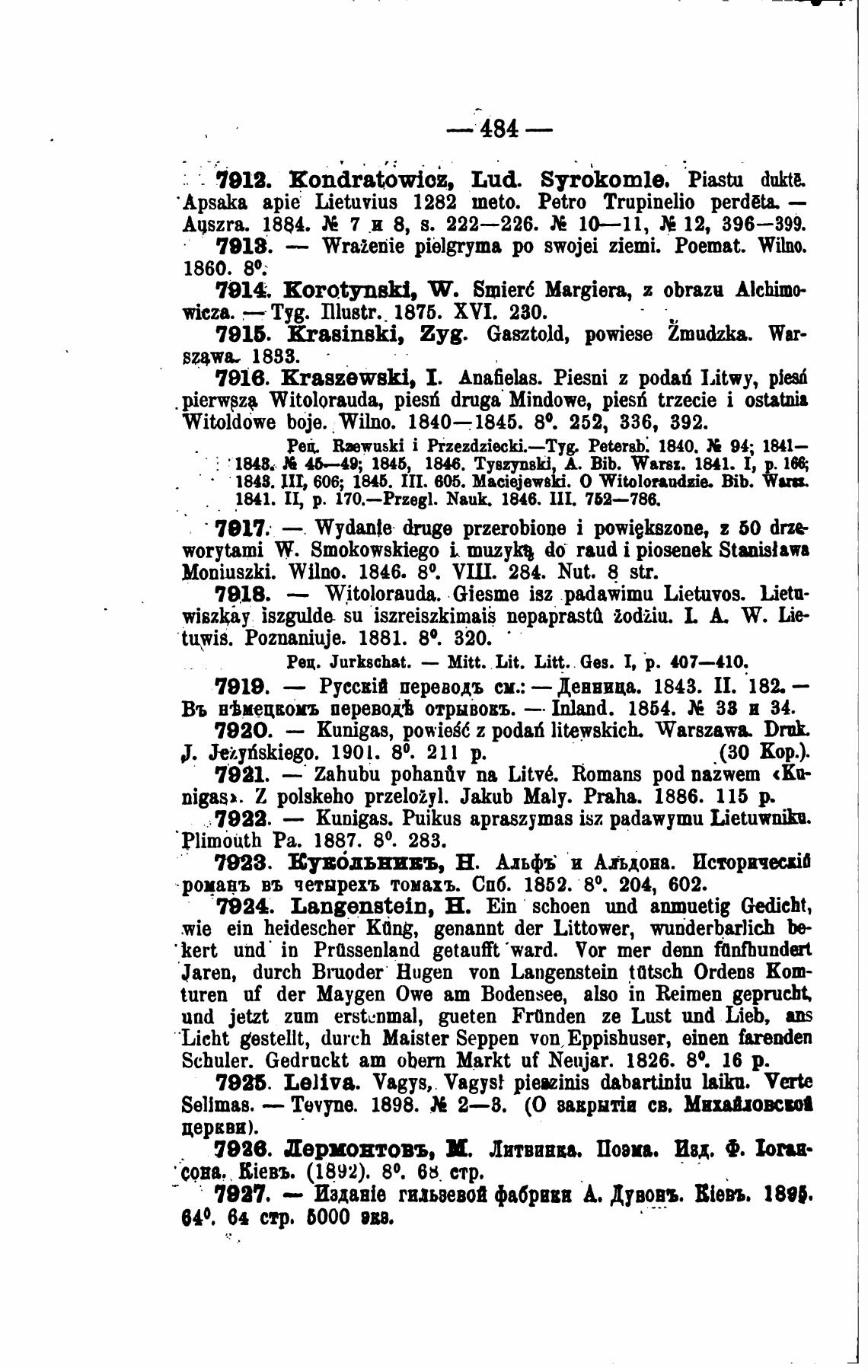 Witoldowe ьоје. Wilno. 1840—1845. 80. 252, 336, 392.
