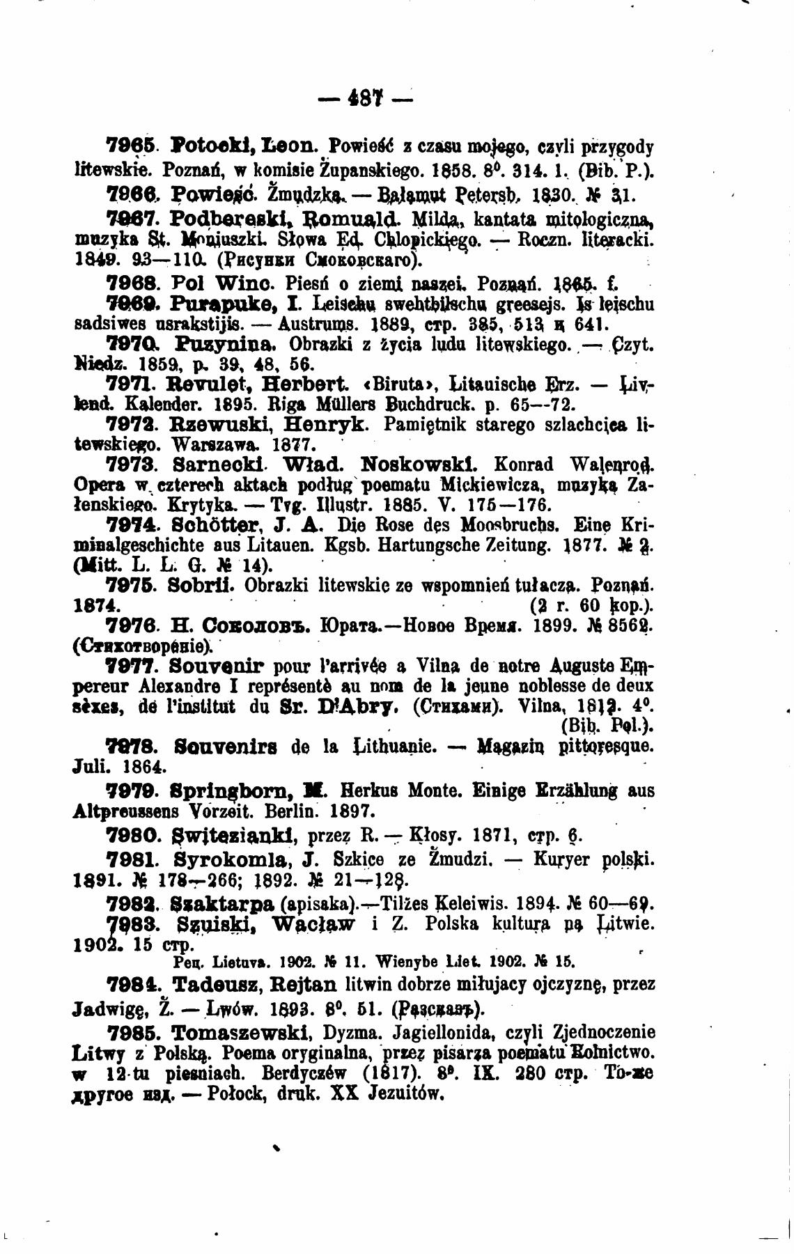 litewskie. Ропаб, komiBie hupanskiego. 1858. 80. 314. 1. (Bib.'p.).