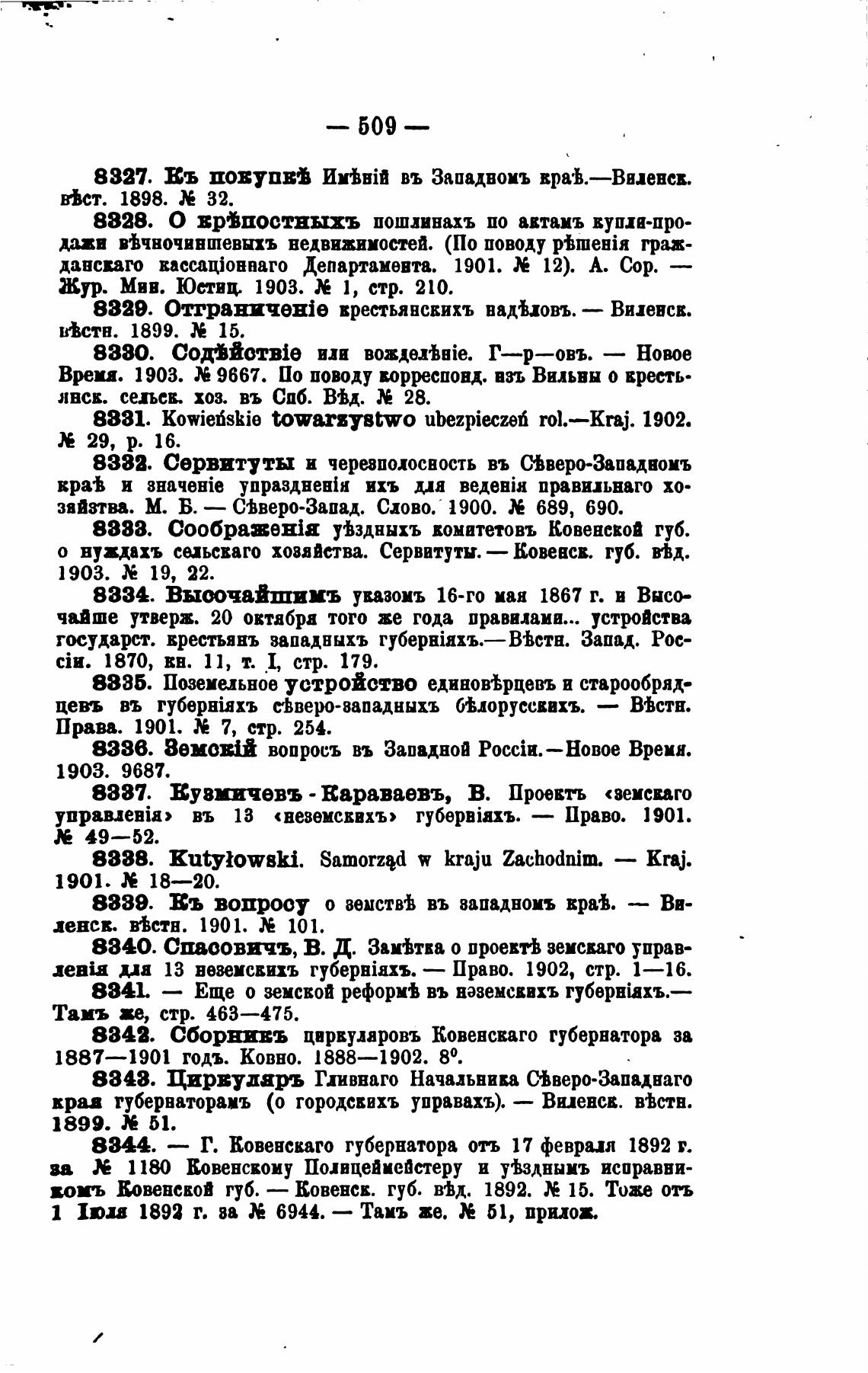 8329. Отграничеяје вреетьянсвихъ вадьовъ. — Вилевсв.