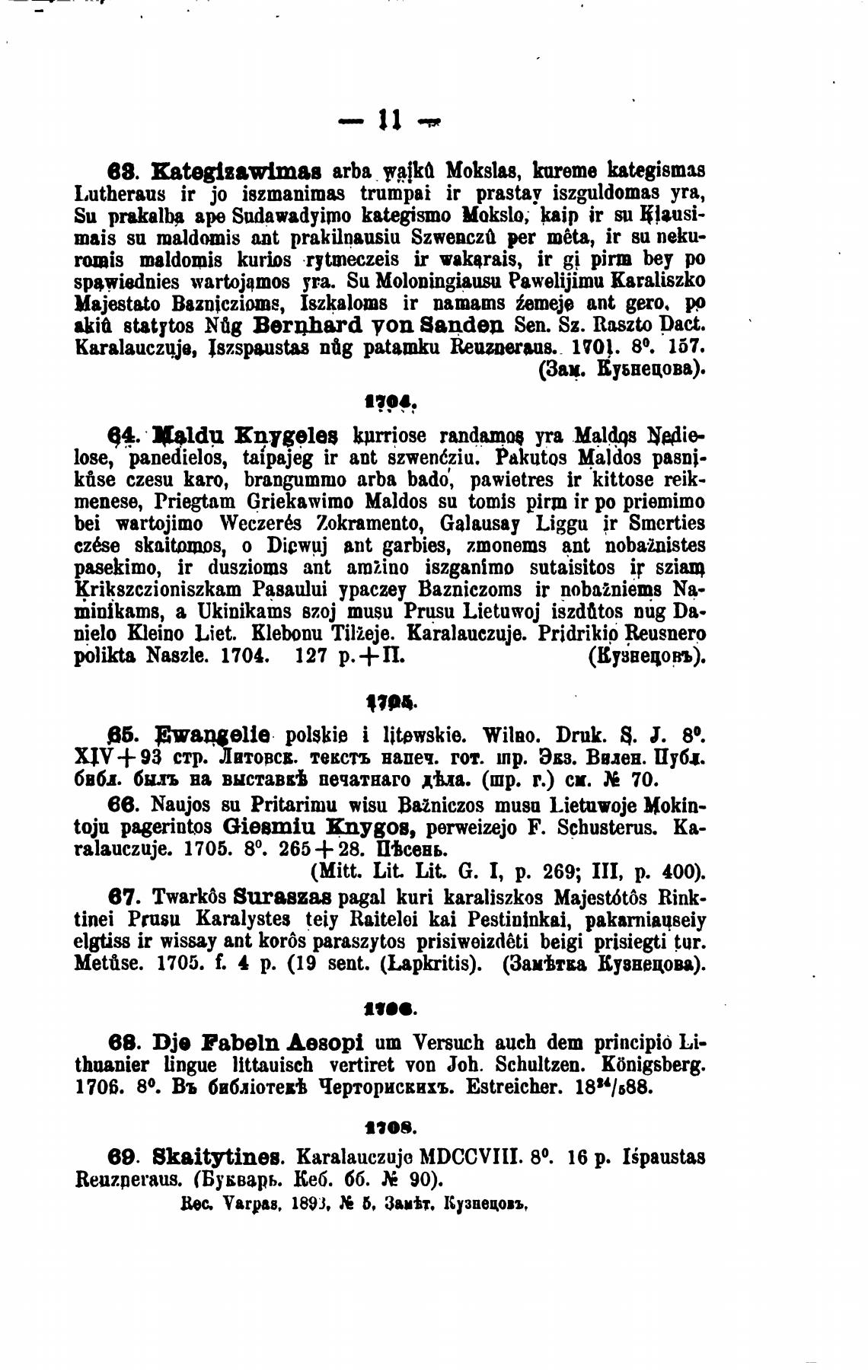 karalauczgje, Iszspustas под patamku Reuzneraus. 1701. 80. 167.
