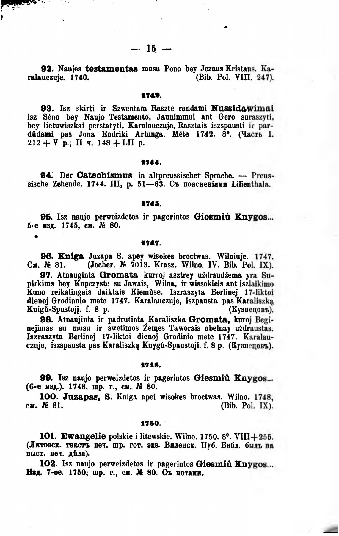 (Литовсв. текстъ печ. шр. гот. во. Ввленсв. Пуб. Вибл. быль ва