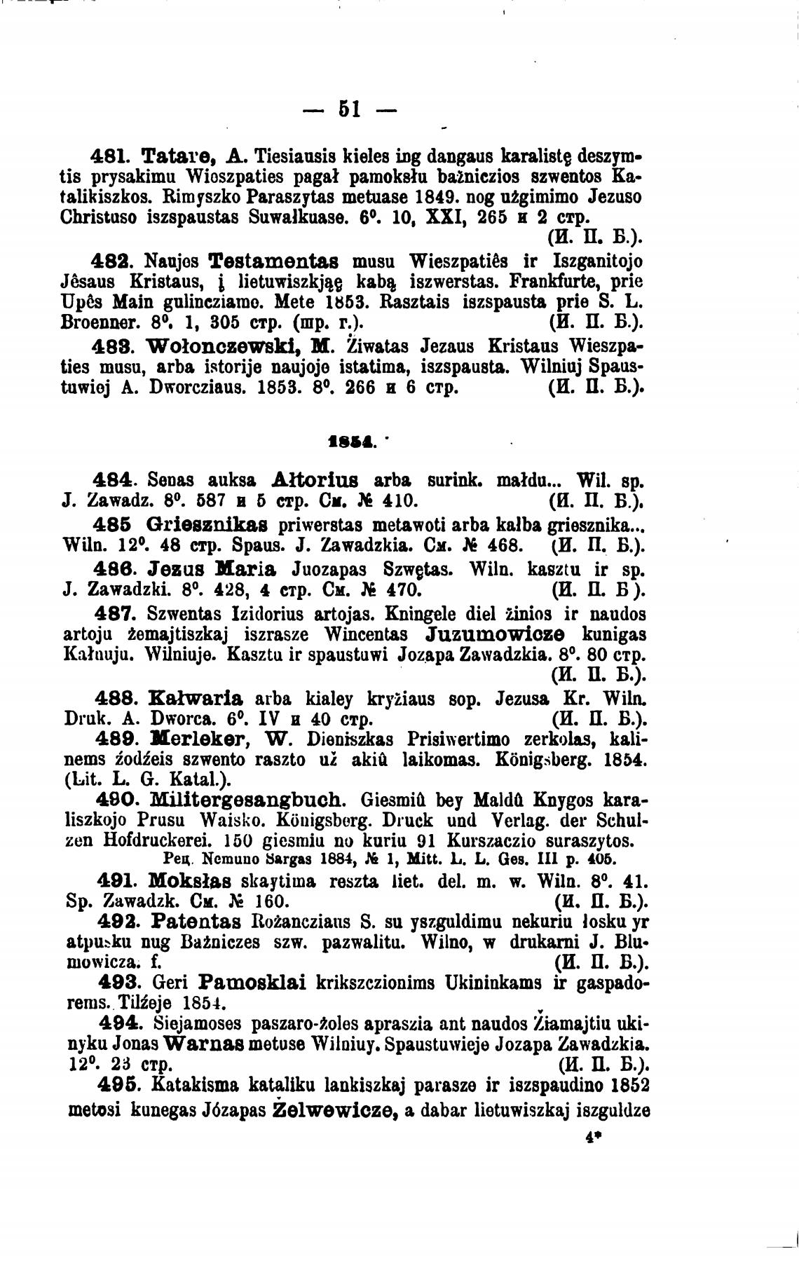 atpu>ku пид Batniczes szw. pazwalitu. Wilno, drukarni Ј. Blu•