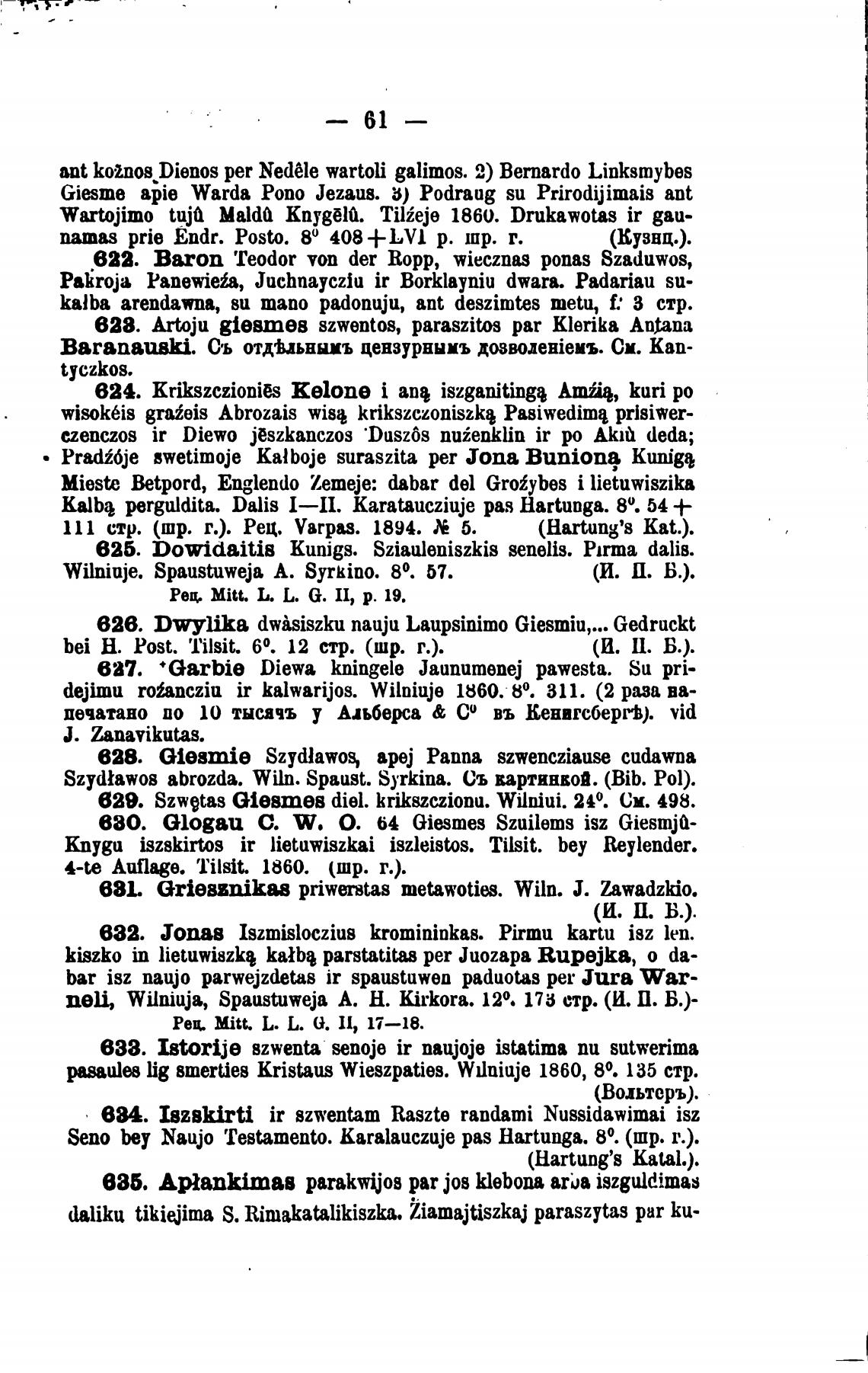 Baranauski. Съ отдььниъ цензурнымъ дозволетемъ. См. Кап-