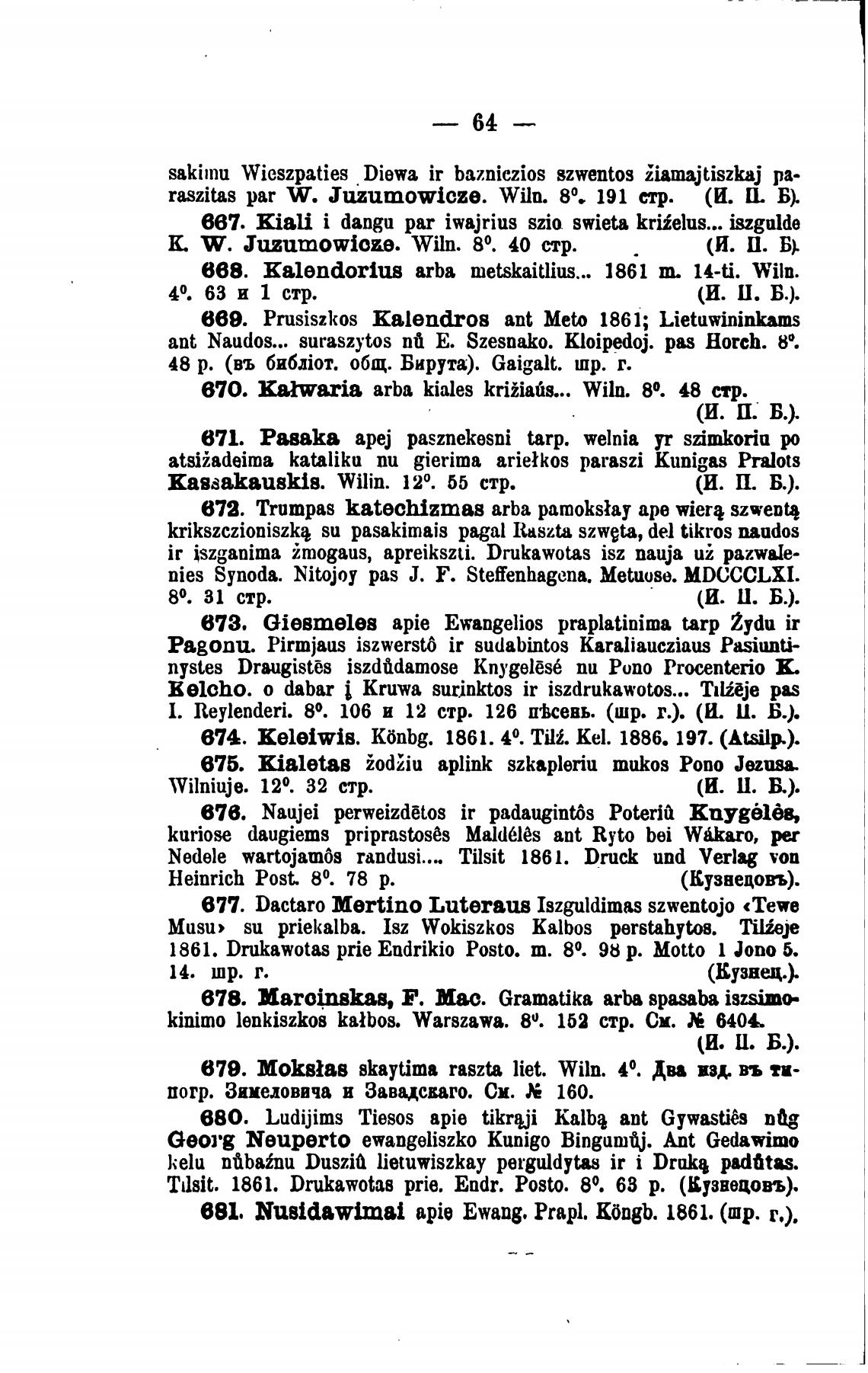 raszitas par W. Juzumowicze. Wiln. 80. 191 erp. (И. И. Б).