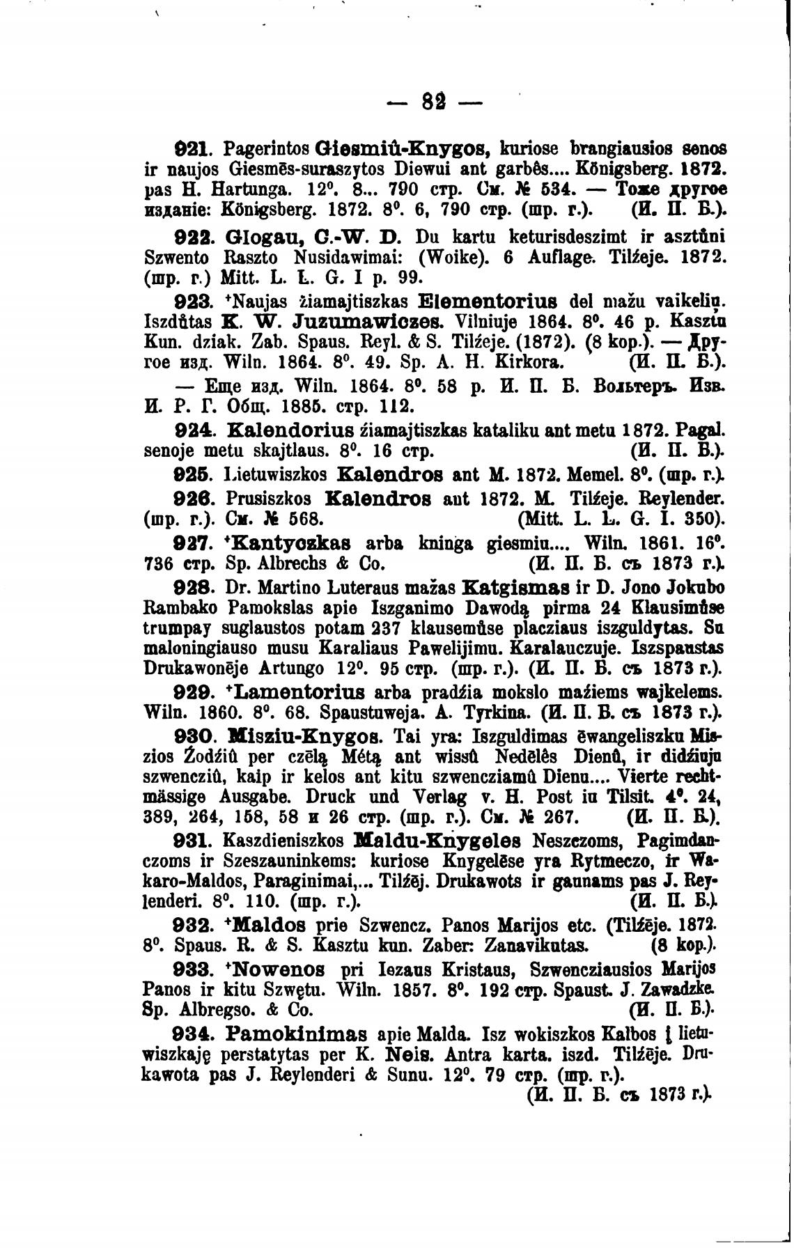 925. Lietuwiszkos kalendros ant М. 1872. Memel. 80. (шр. г.).