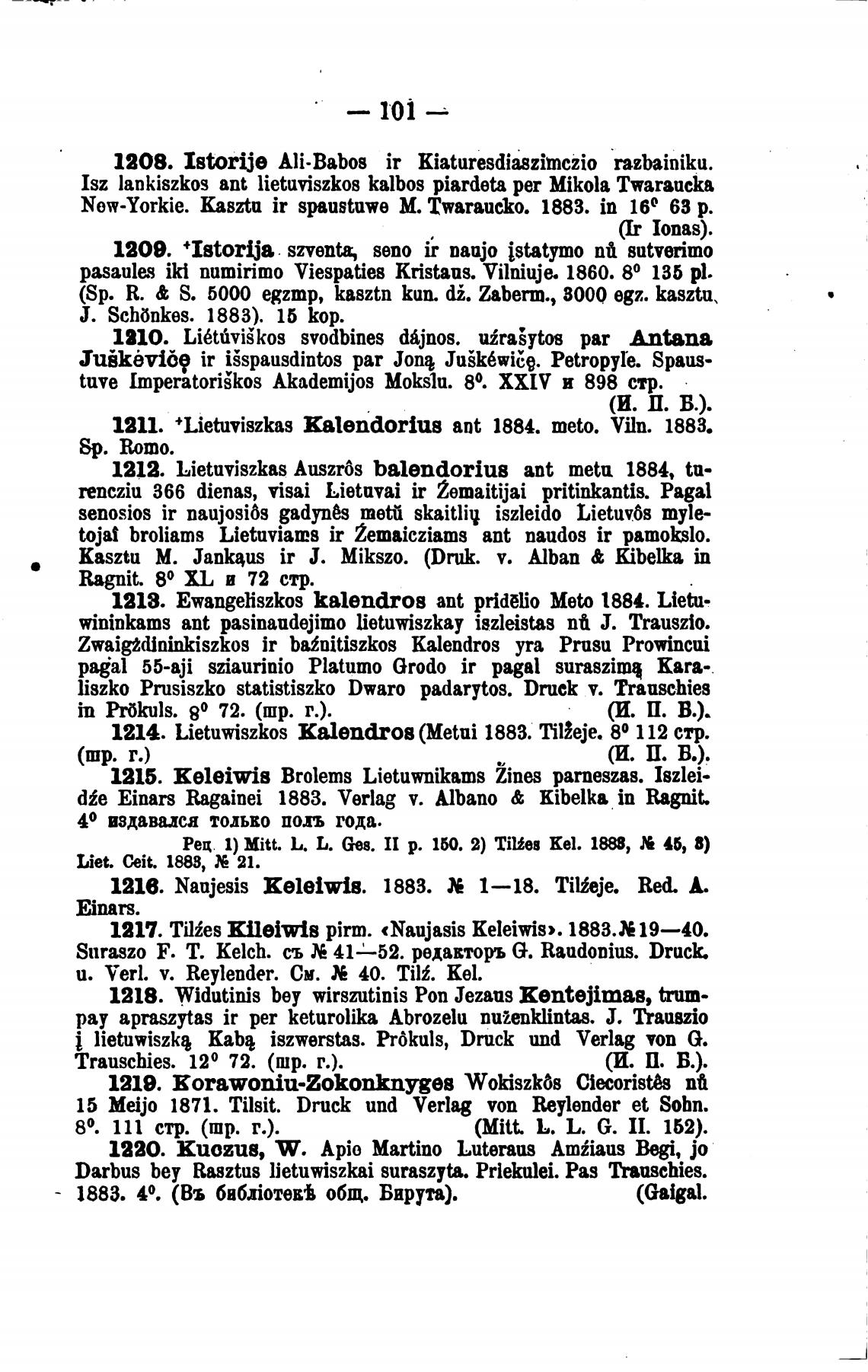 1211. +Lietuviszkas kalendorius ant 1884. meto. Viln. 1883.