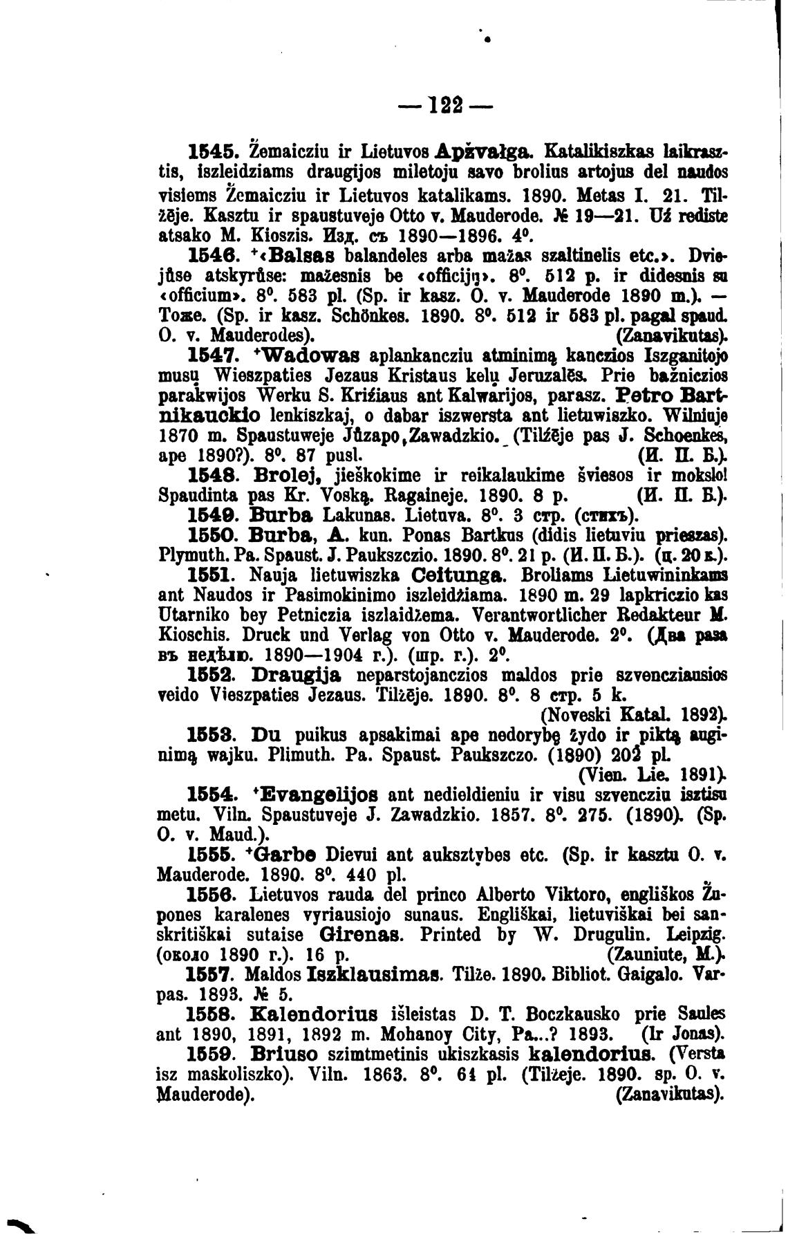 metu. Viln. Spaustuveje Ј. Zawadzkio. 1857. 80. 275. (1890). (Sp.