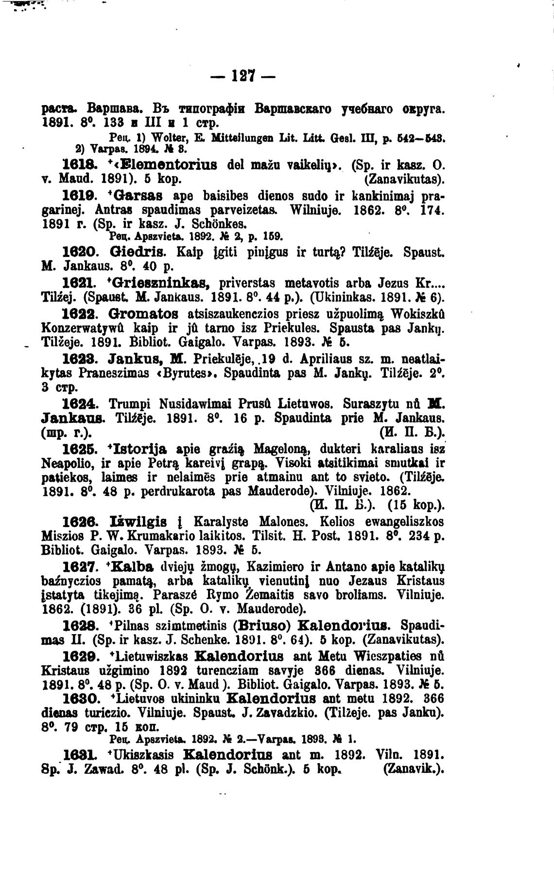 1891. 80. 48 р. (Sp. О. v. Maud ). Bibliot. Gaigalo. Varpas. 1893. 5.