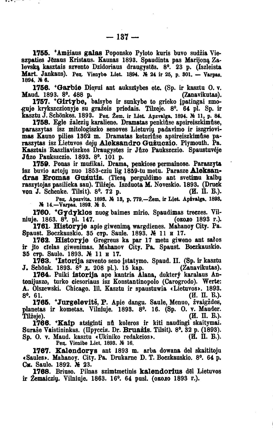 8paust. Boczkauskio. 85 стр. Saule. 1893. ll и 17.