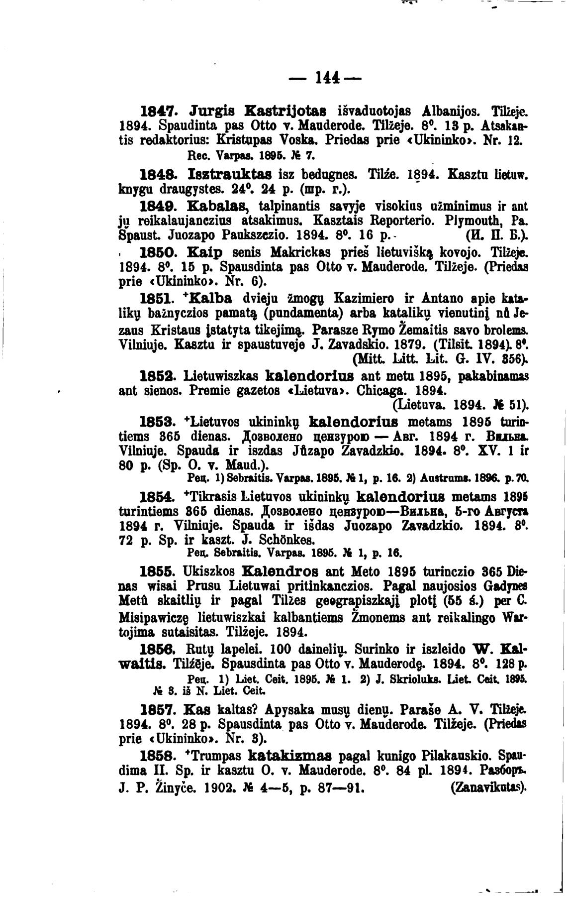 1894. Spaudinta рад 0tto v. Mauderode. Tilmje. 80. 18 р. Atsakae•