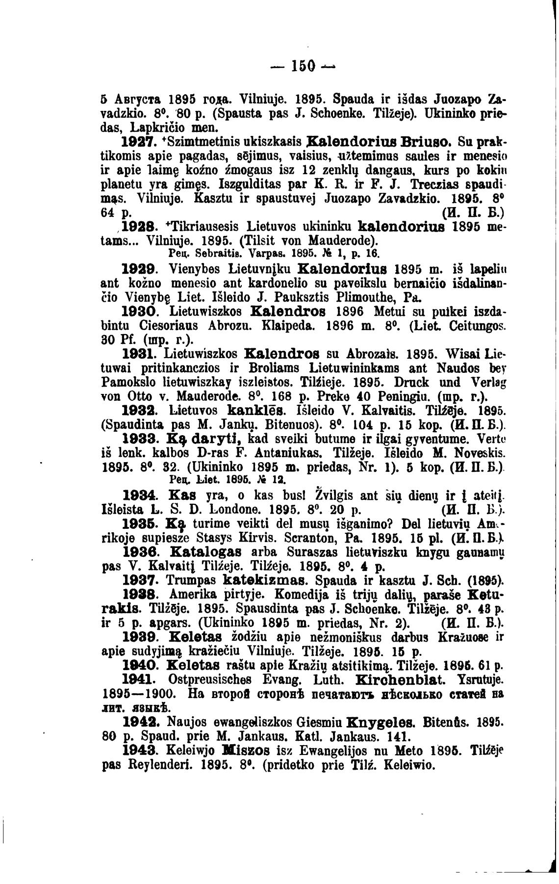 1931. Lietuwiszkos kalendros su Abromi8. 1895. Wisai Lie•