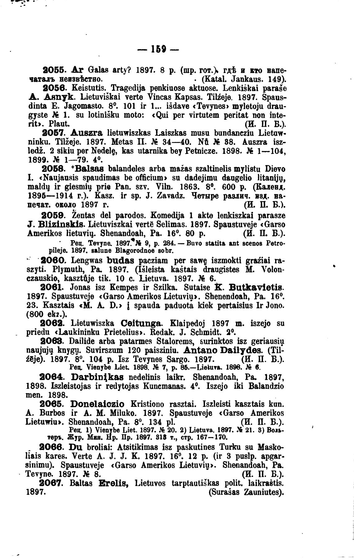 Рец. Vienybe Liet. 1898. 7, р. 86.—Lietuv•. 188 6.
