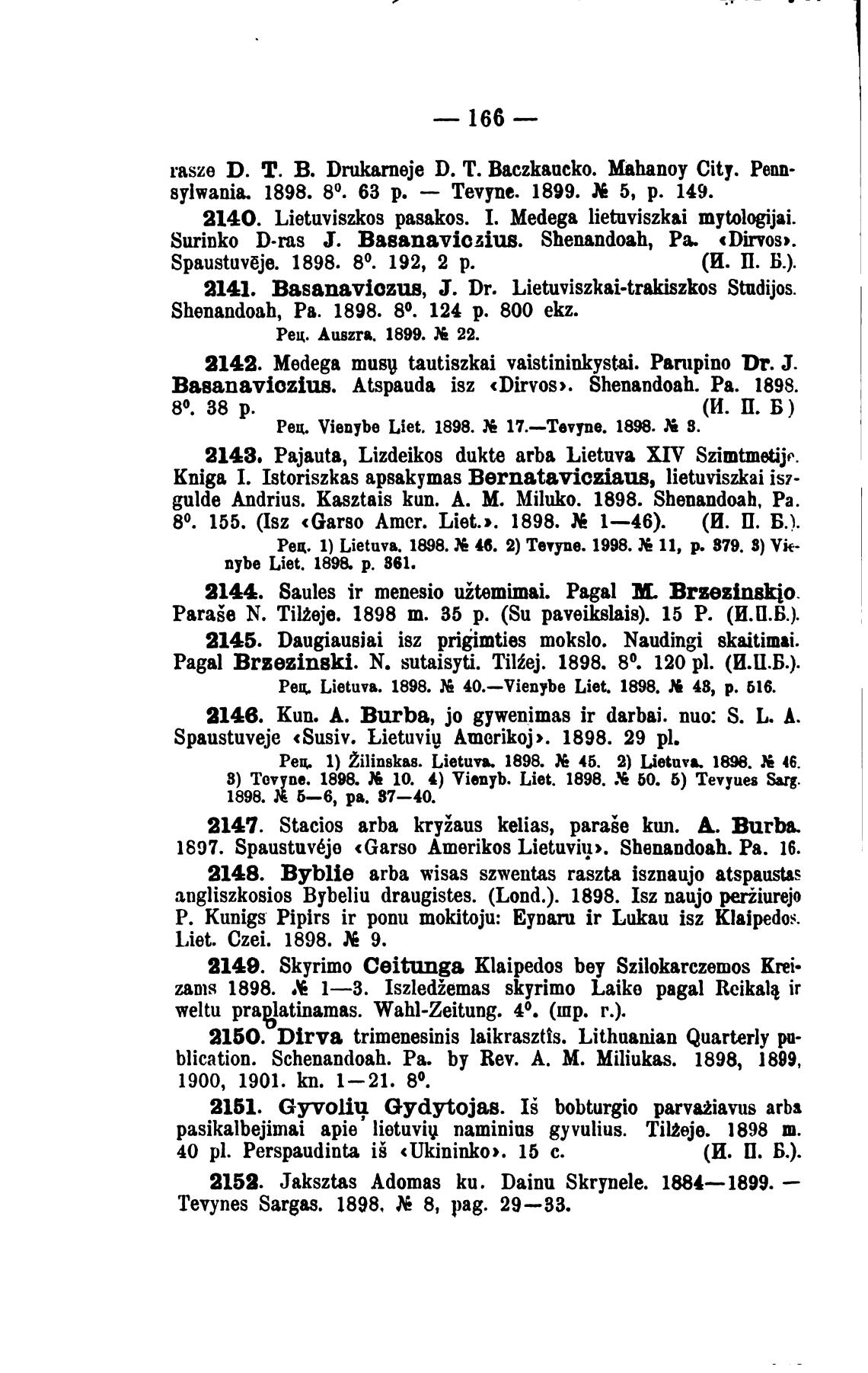 8) Tcvyne. 18Ж 10. 4) Vienyb. Liet. 1898. 60. 5) Tevyues