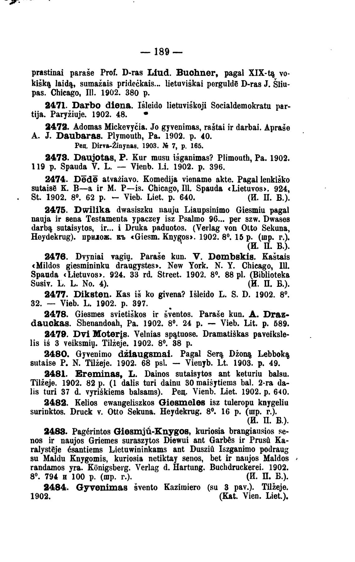 lis turi 37 d. vyriSkiems balsams). Рец. Vienb. Liet. 1902. р. 640.