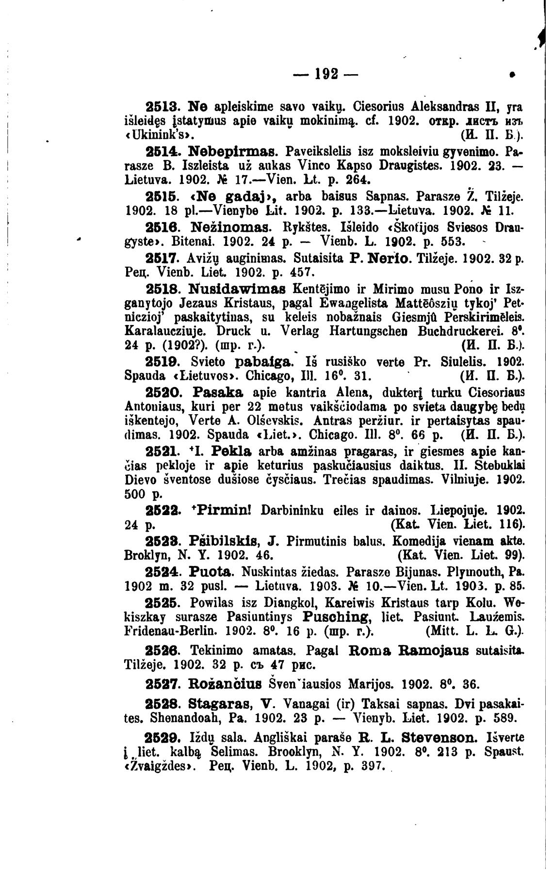 1902. 18 pl.—Vienybe Lit. 1902. р. 133.—Lietuva. 1902. 11.
