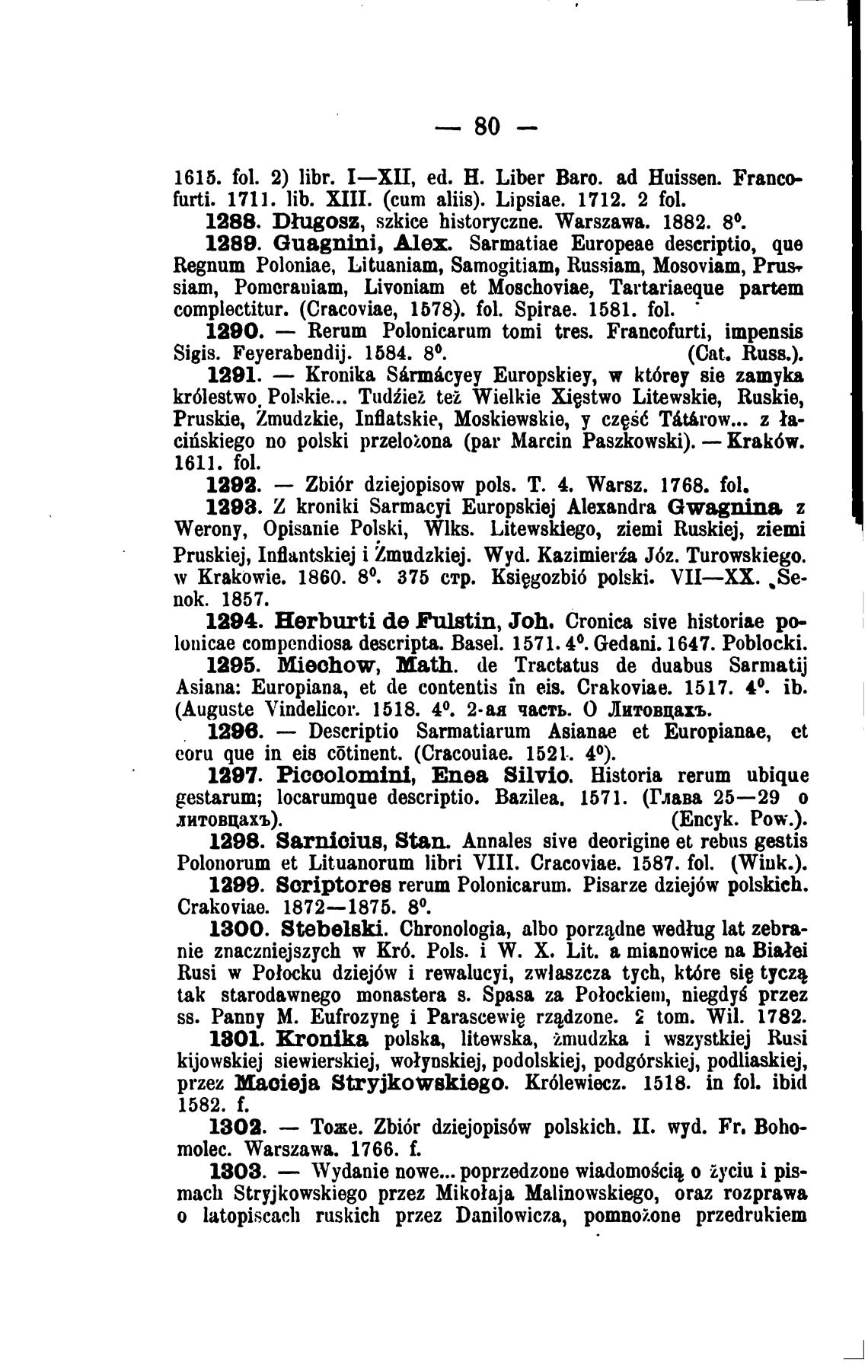 Polonorum et Lituanorum libri VIII. Cracoviae. 1587. fol. (Wiuk.).