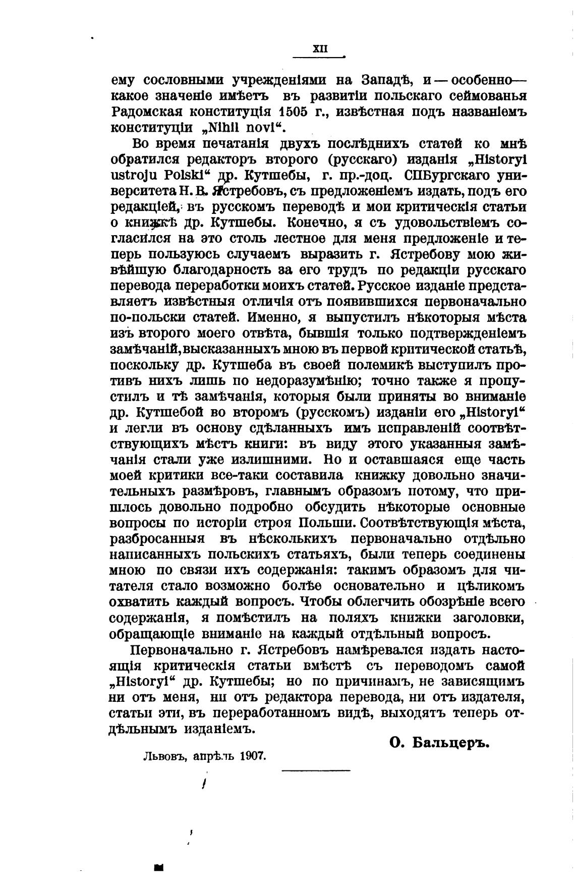др. Кутшебой во второмъ (русскомъ) издан1и его „Historyi“
