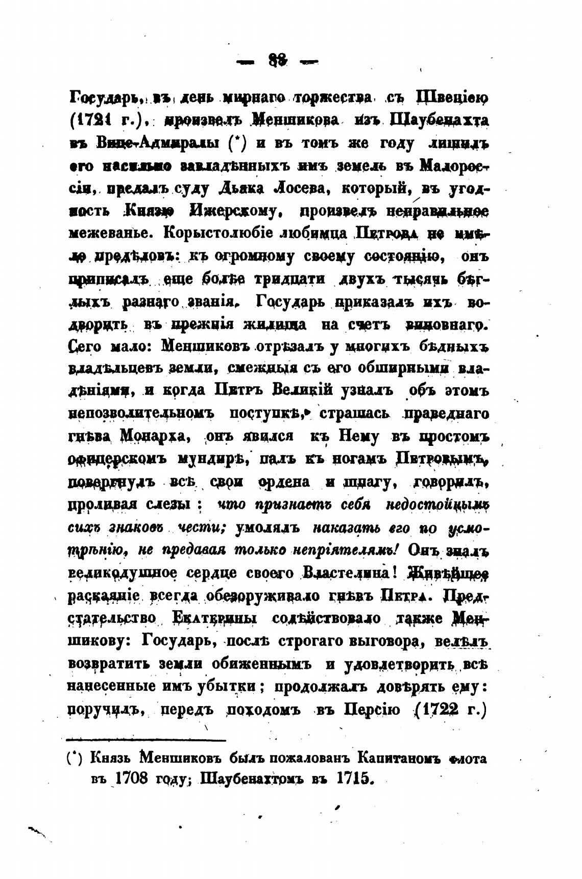С) Князь Меншиковъ бьиъ пожаловань Капитаномъ нота