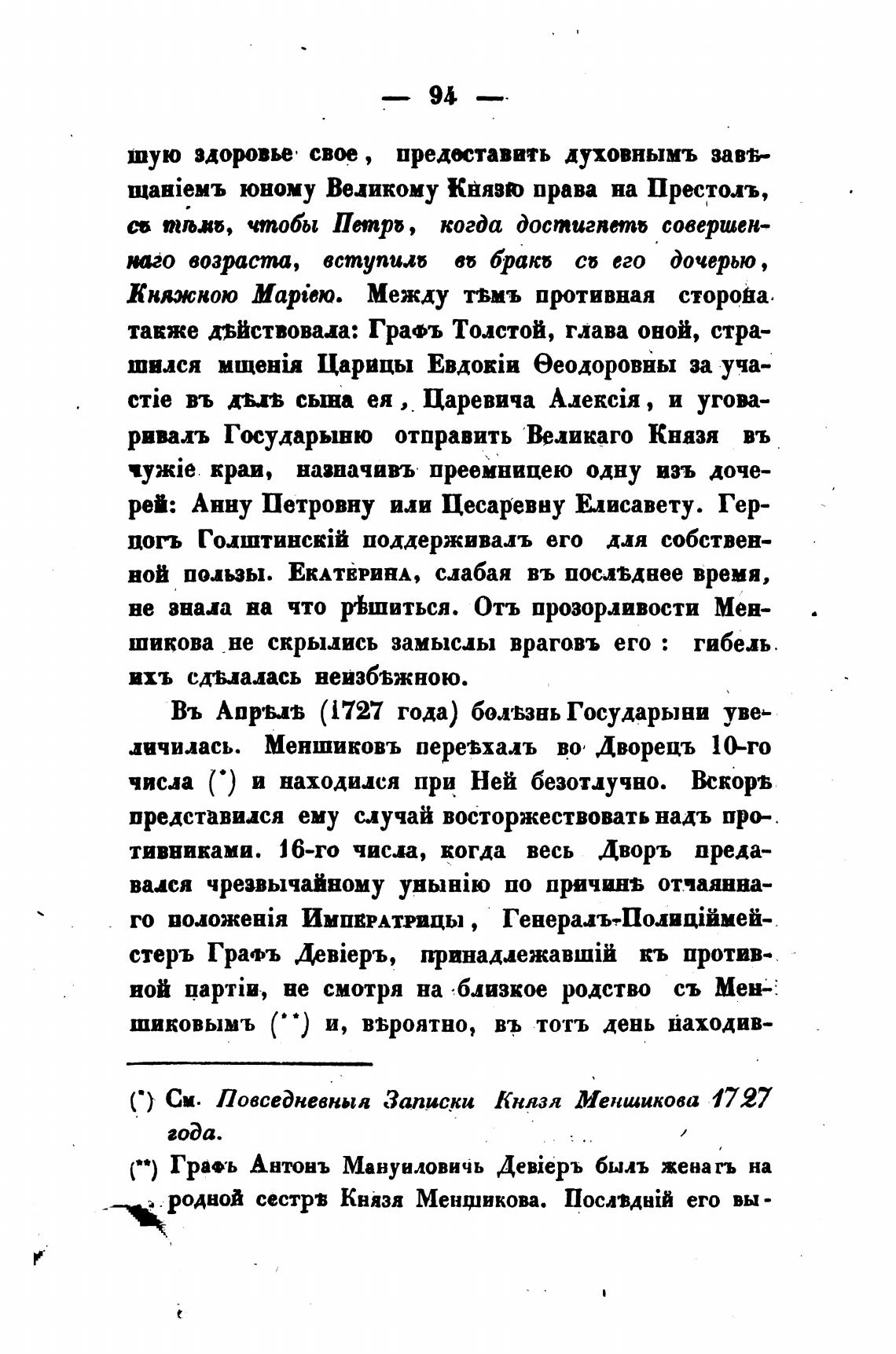 ( • ) См. ПовсеДневныя Записн Князя Меншикова 4797