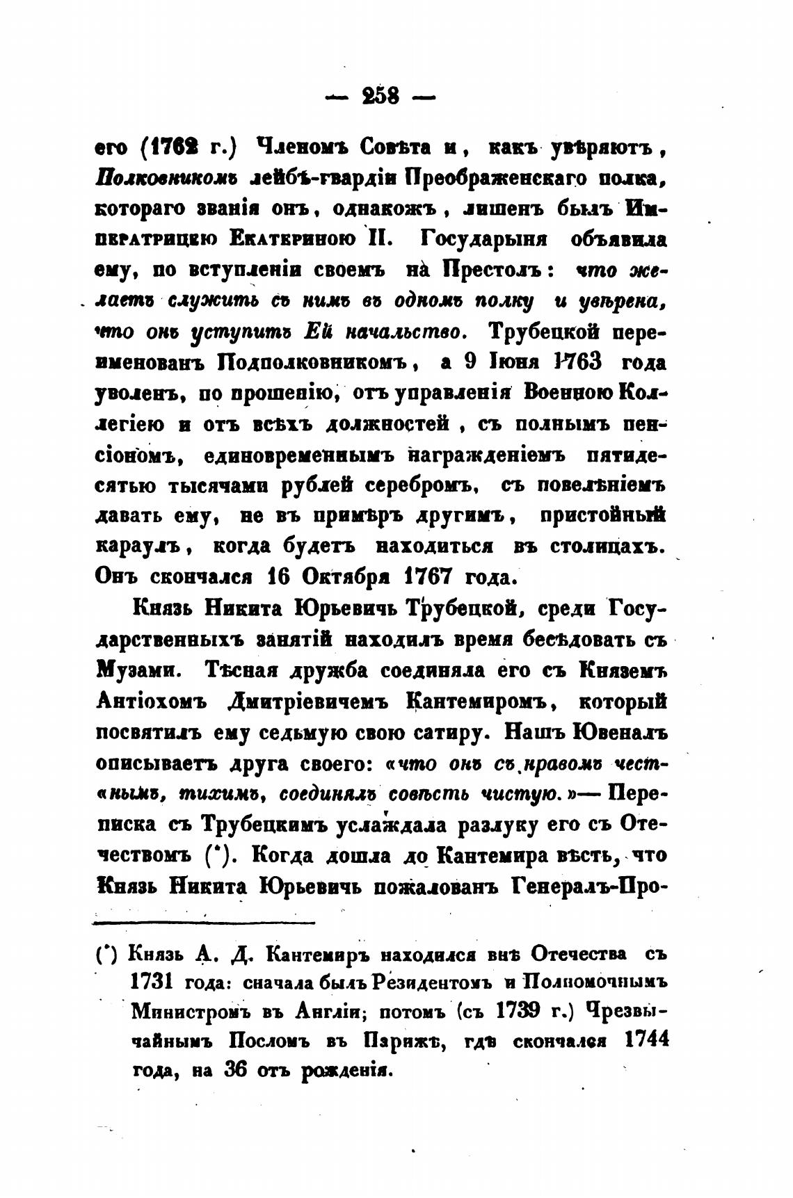 ( • ) Князь А. Д. Кантемиръ находился ваз Отечества съ