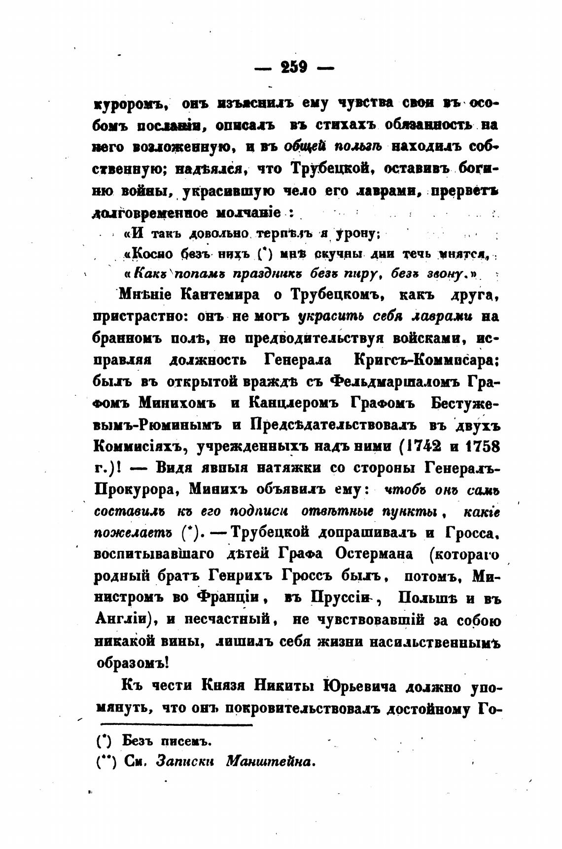 MH'BHie Кантемира о Трубецкомъ, какъ друга,