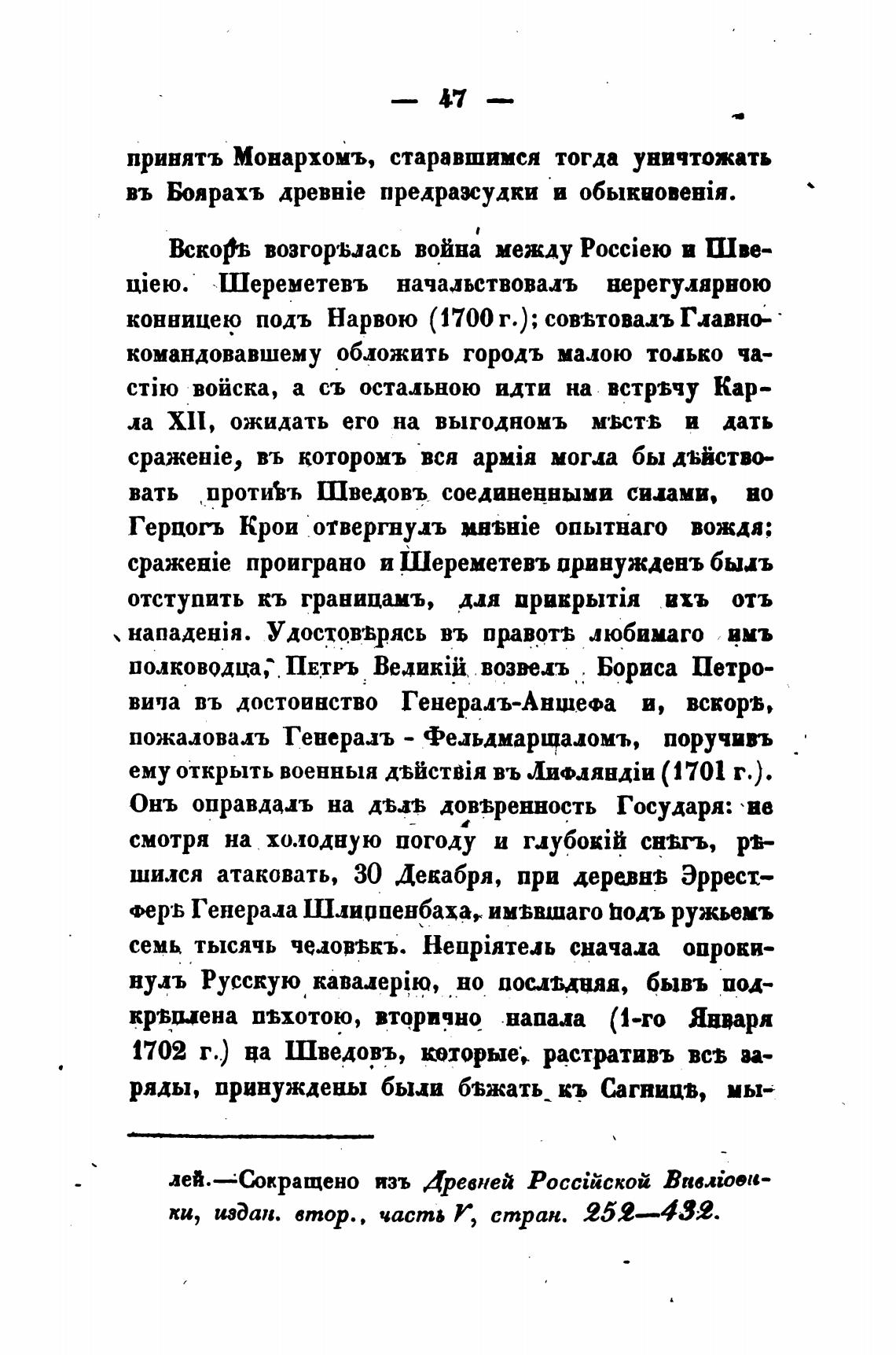 проиграно и Шереметевъ принуждень бьыъ