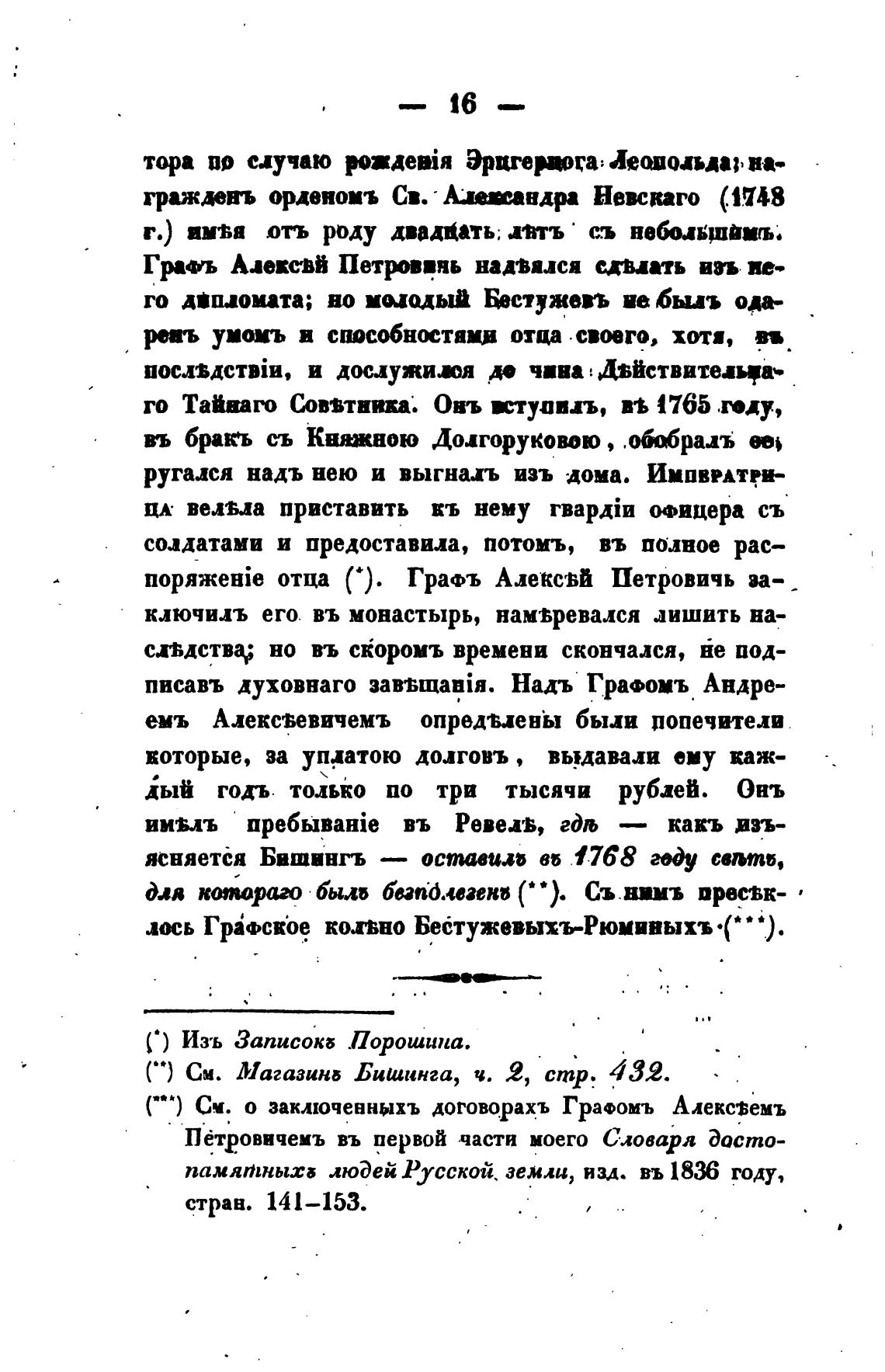 С) Изъ Записок; Порошина.