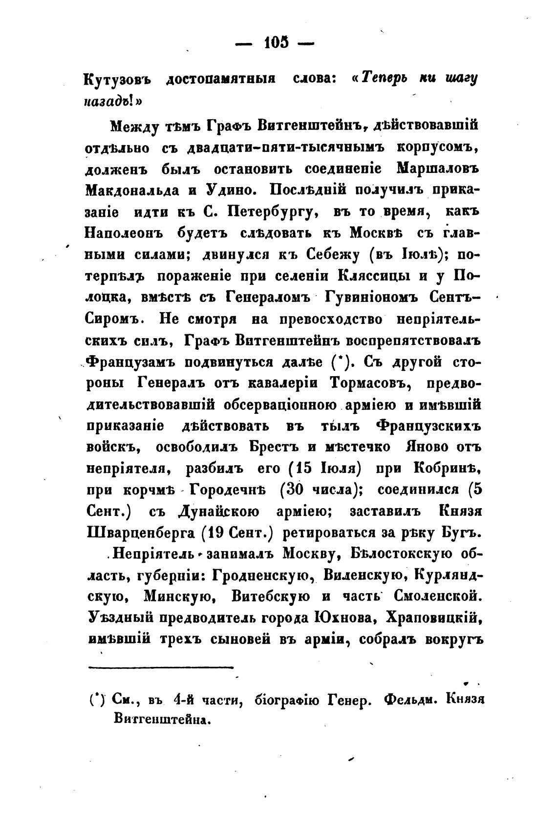 Кутузовъ достопамятныя слова: «Теперь ки ишгу