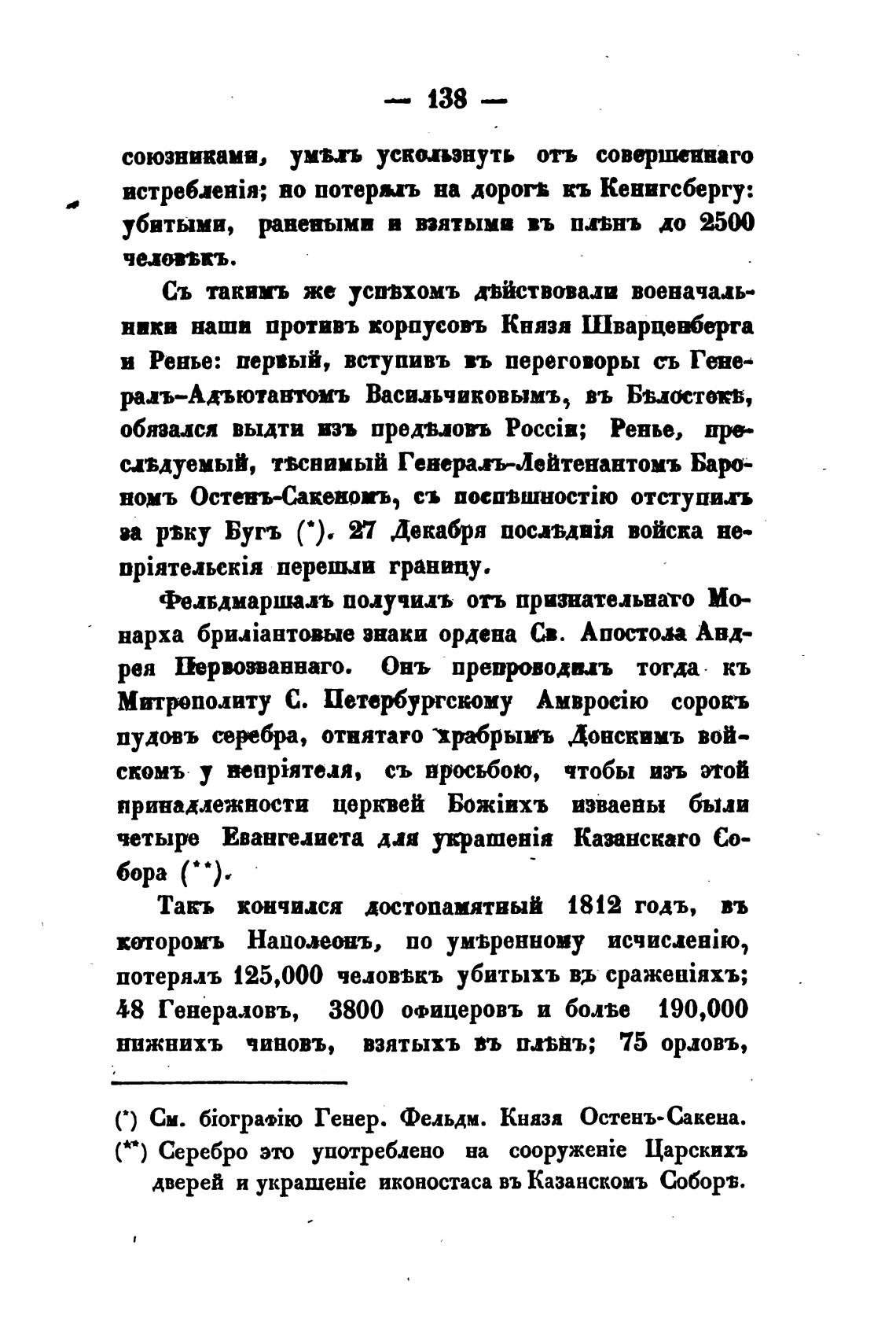 С) См. Генер. Фельдм. Князя Остенъ•Сакена.