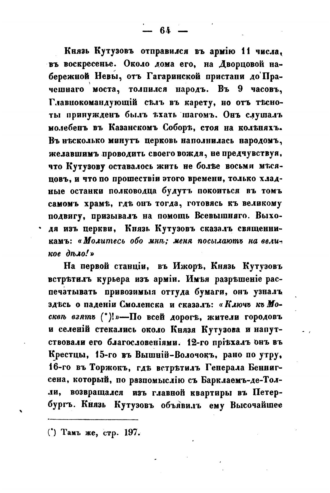 Князь Кутузовъ отправился въ 11 числа,