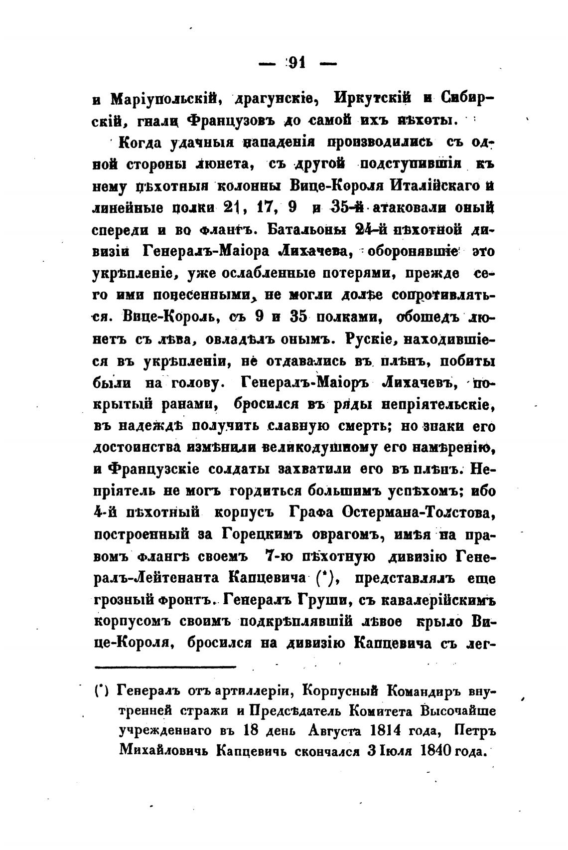 Михайловичь Капцевичь скончался З Июля 1840 года.