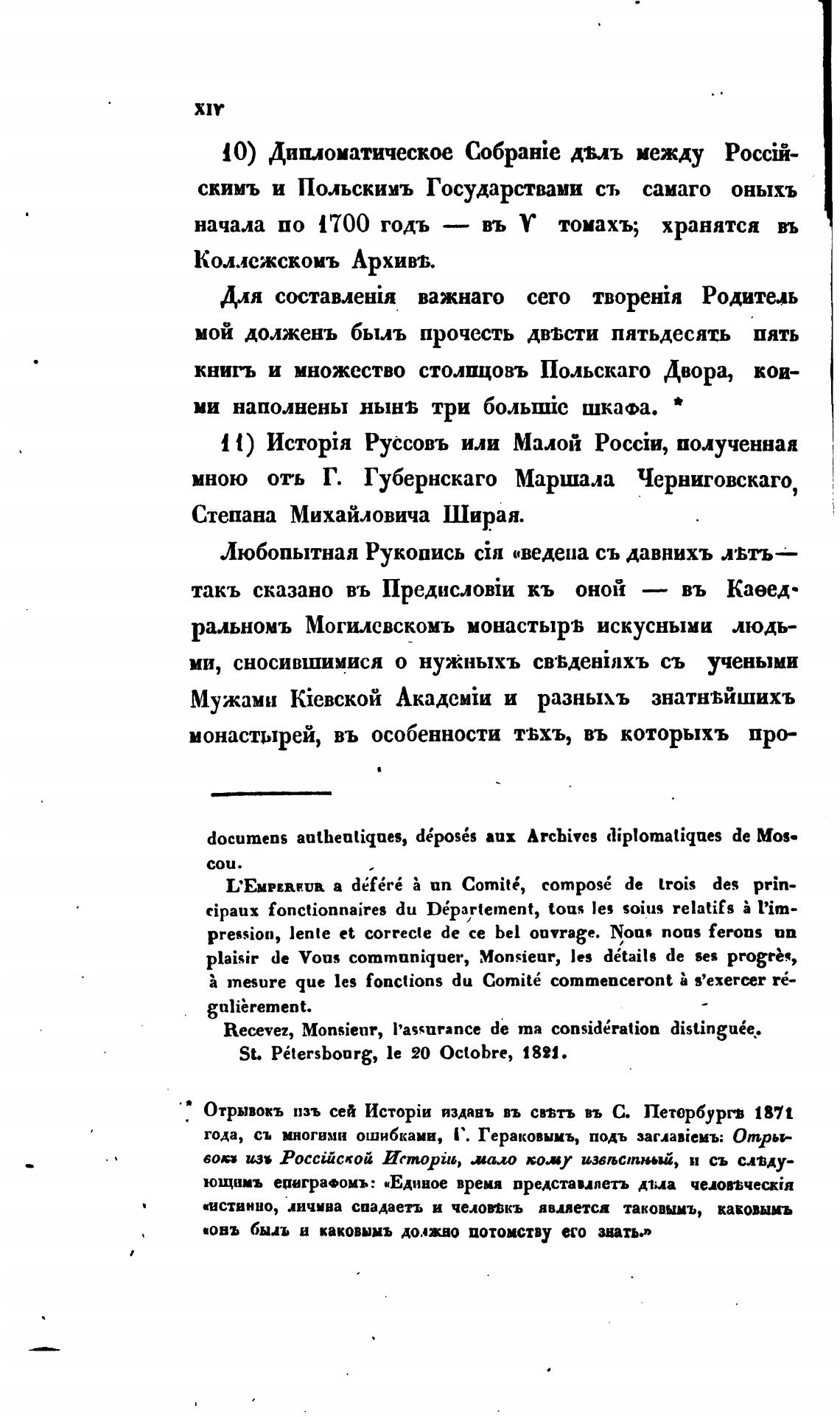 St. PEtersboorg, le 20 0ctobre, 1821.