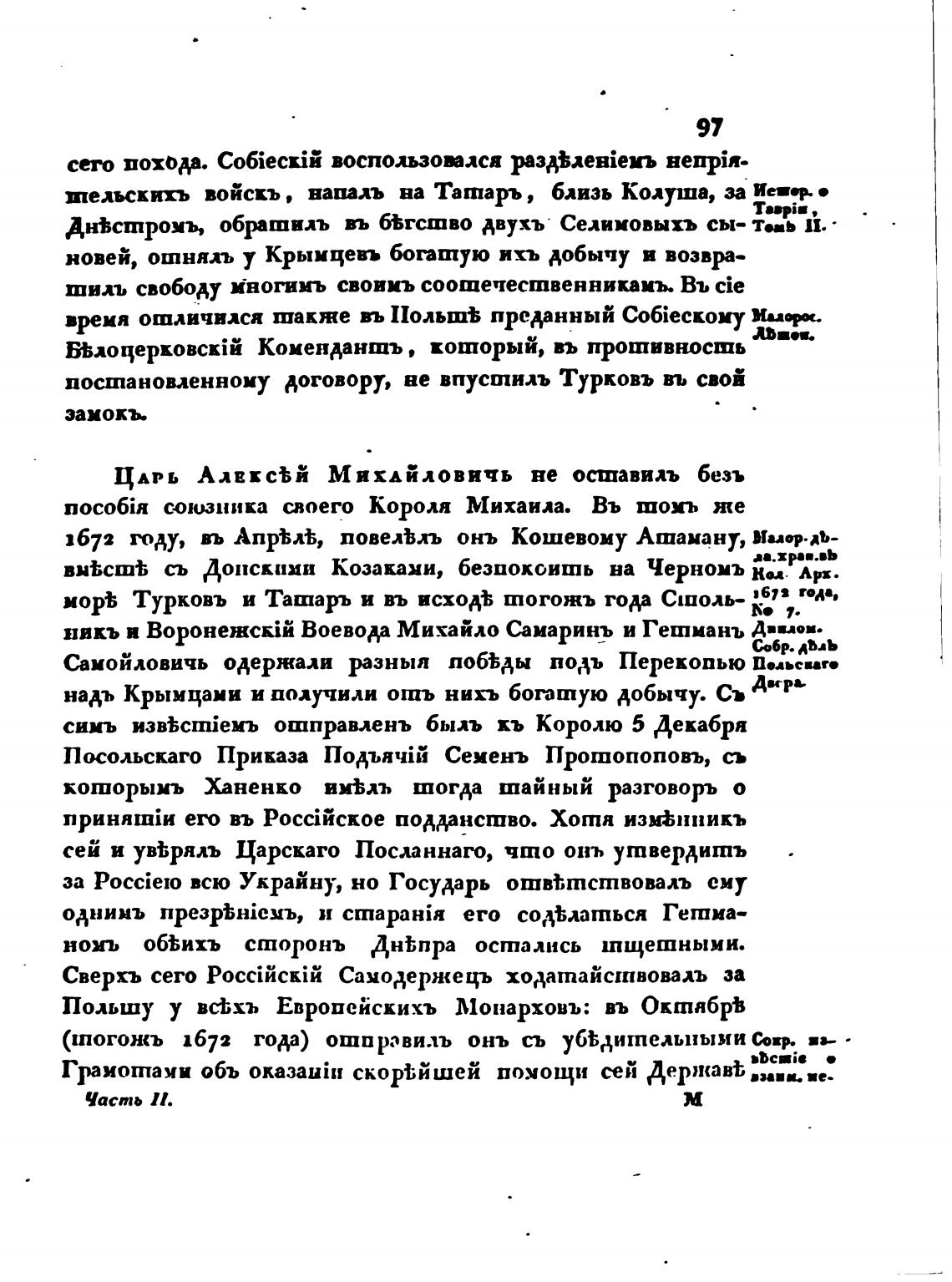1672 году, въ повелЬлъ онъ Кошевому Атаману, Миор.»-
