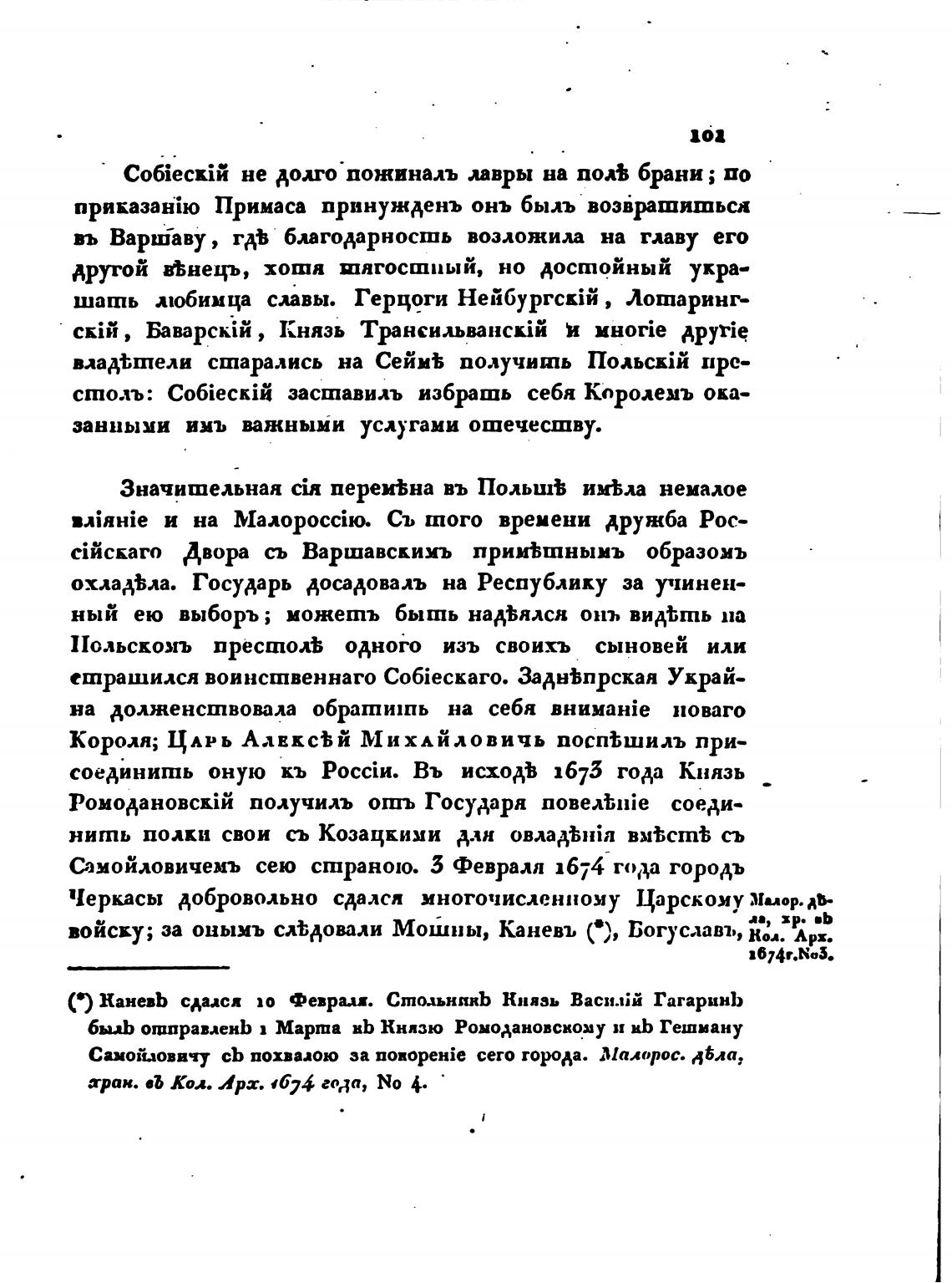 Самойловичемъ сею страною. 3 Февраля 1674 года городь