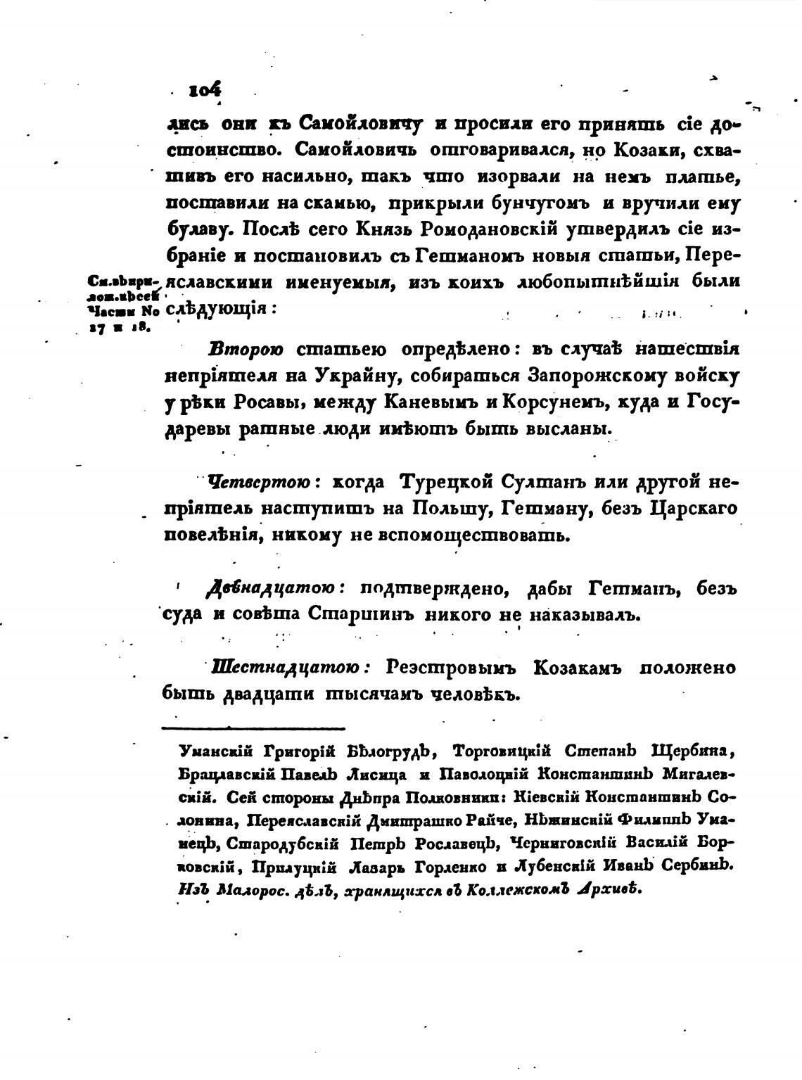 НзЪ Малорос. хранящихся въ КоллежскожЪ Архи“.