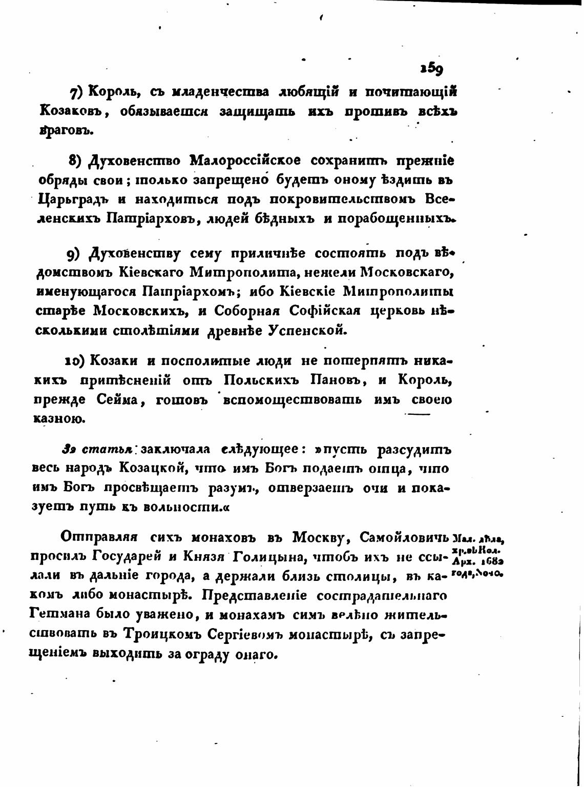 Отправляя сихъ монаховъ въ Москву, Самойловичь мал. дћла,