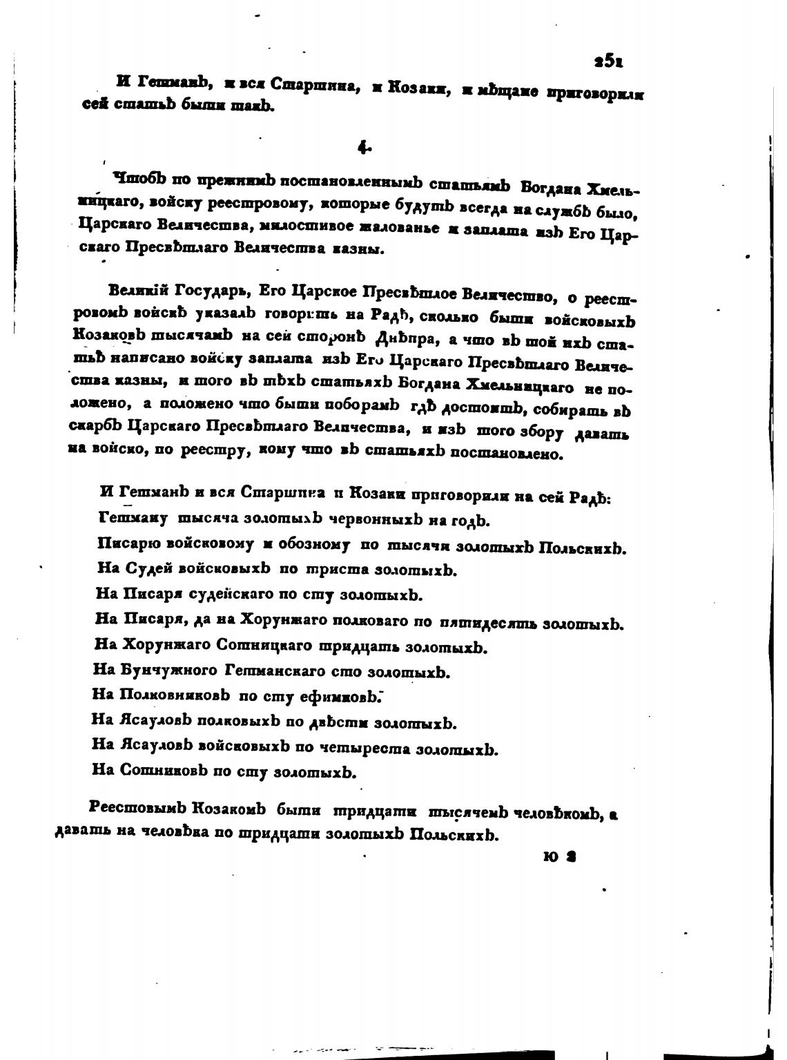 На ЯсауаовЬ войсвовыхЬ по четыреста золотыхЬ.