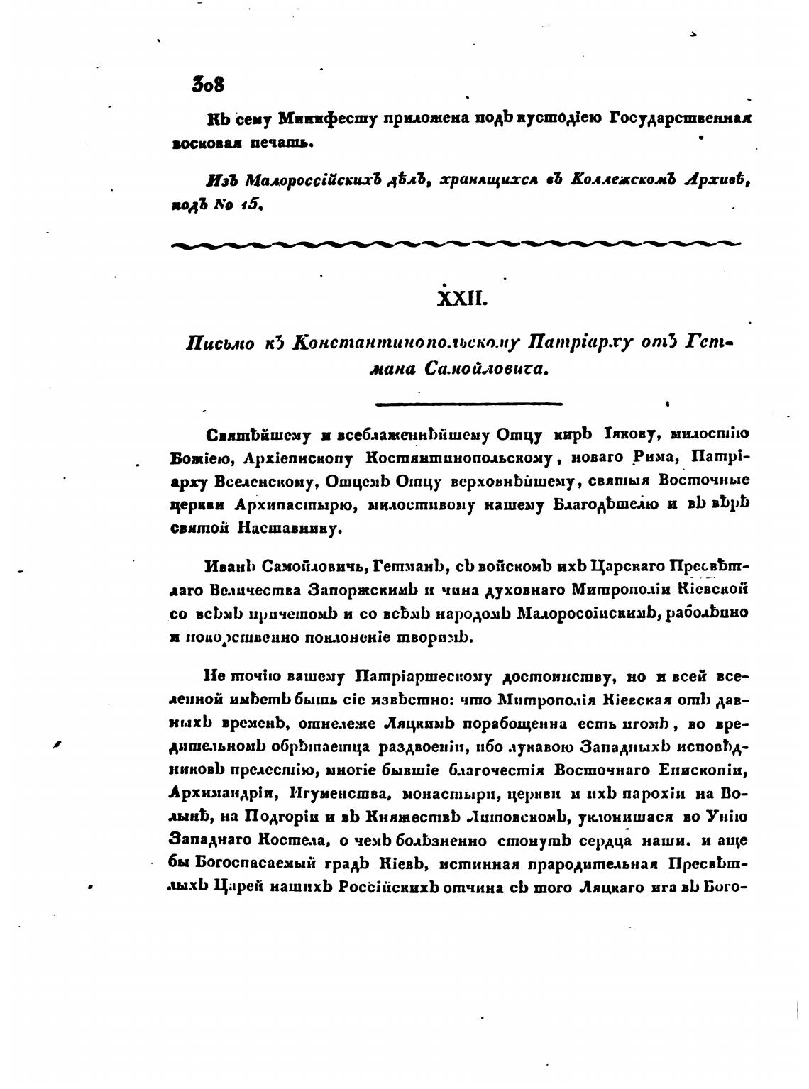 ИЗЪ хранлщихсл въ Коллежскожб Архи“,