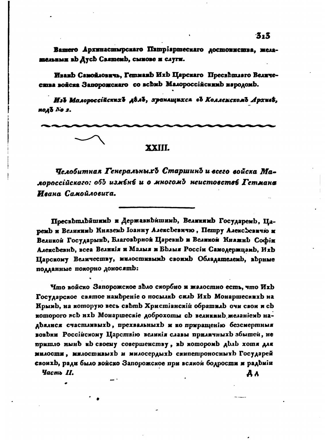 Челобитная Генеральныхб Старшинб и всего войска Ма-